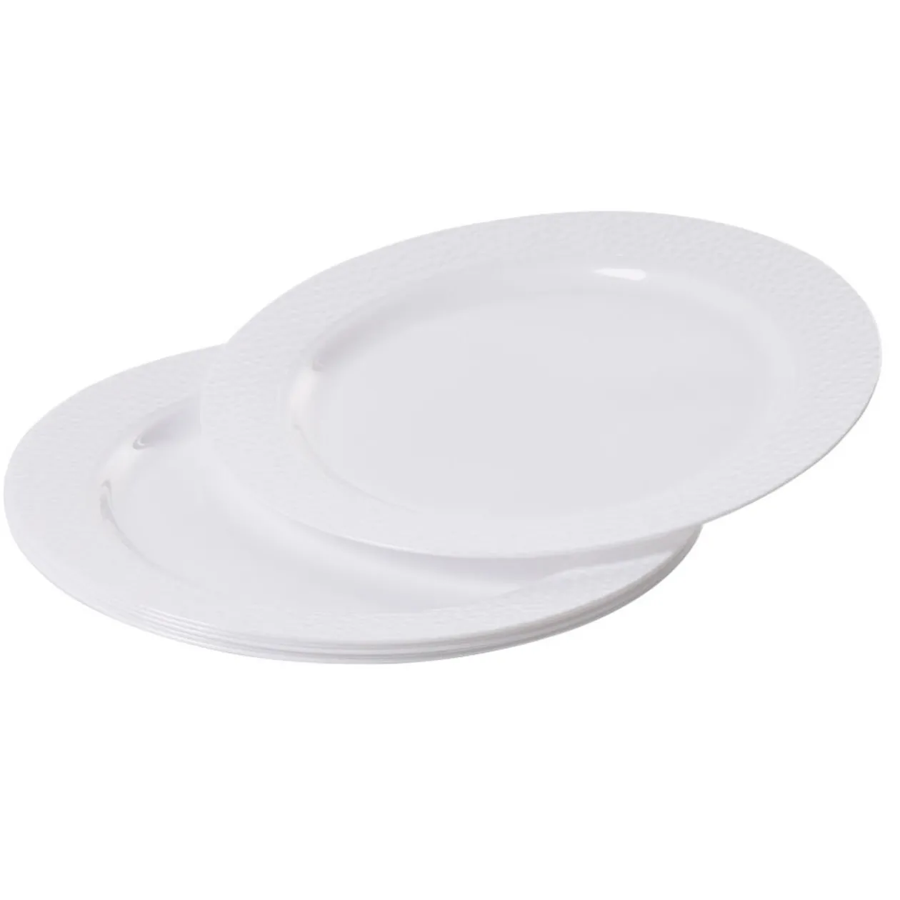 Lot de 6 assiettes plates blanches avec contour déco à effet martelé.