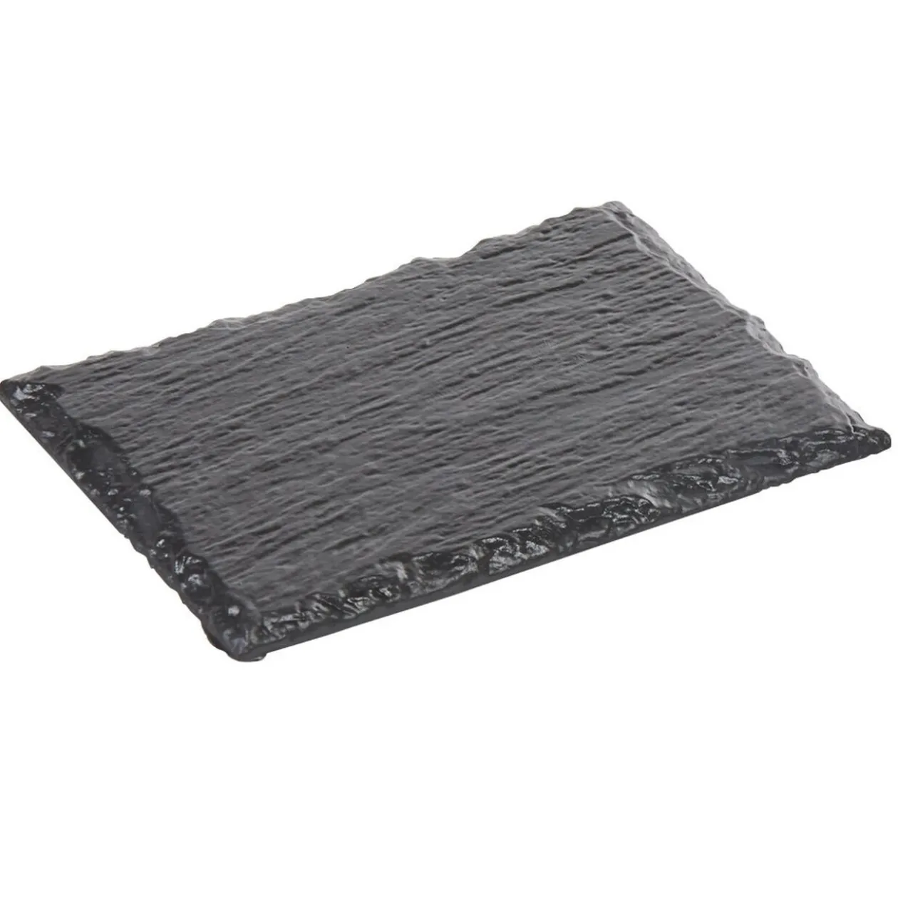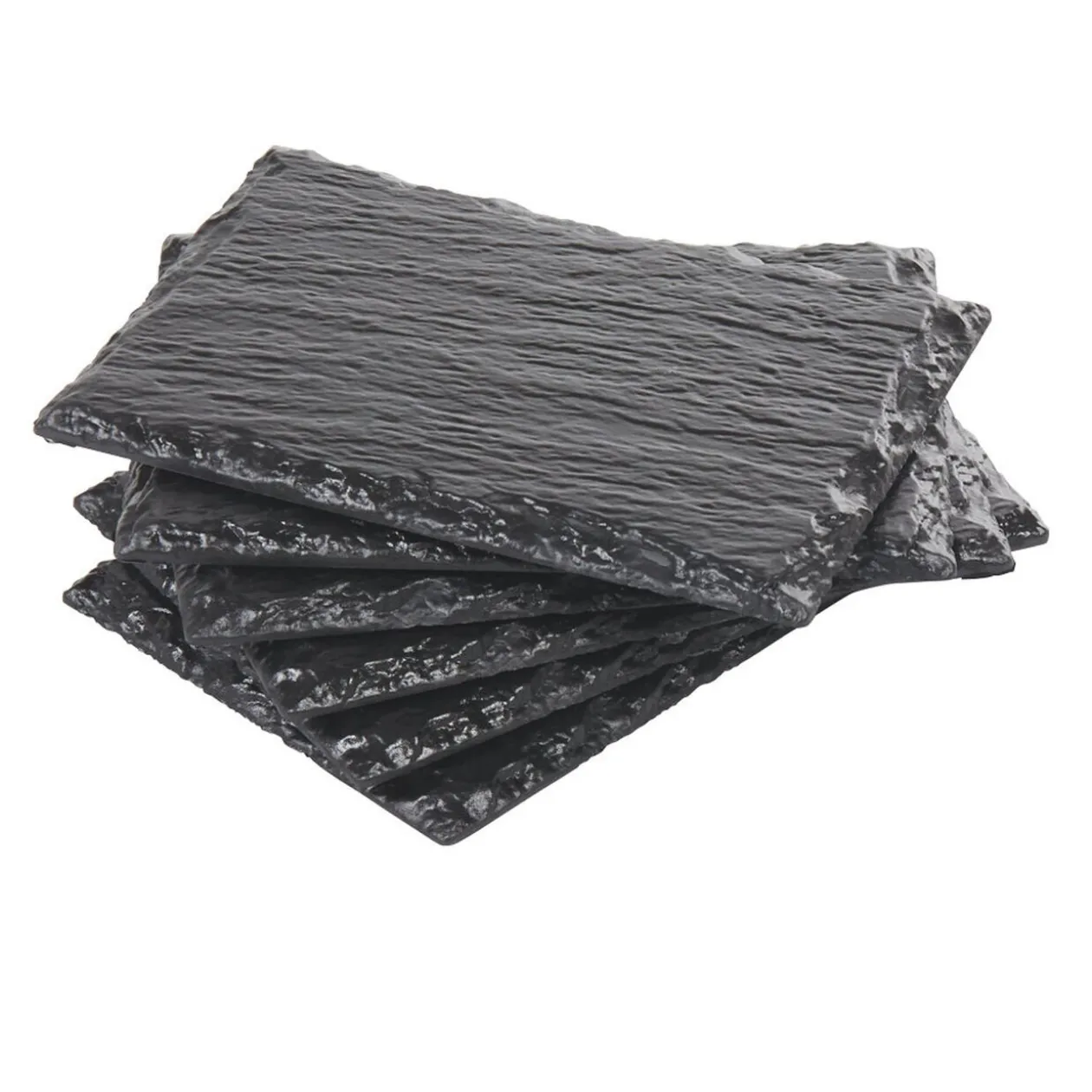 Lot de 6 assiettes rectangulaires en plastique imitation ardoise noire.