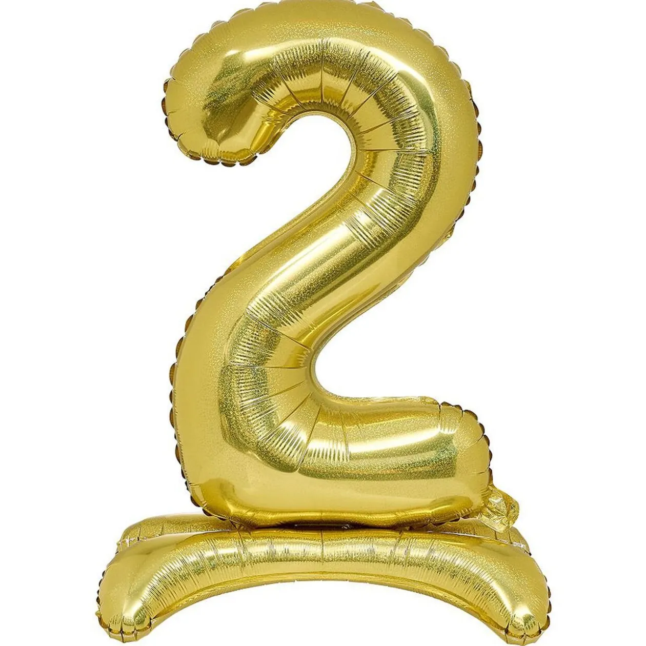 Ballon doré ou argenté en forme de chiffre 2 avec support.
