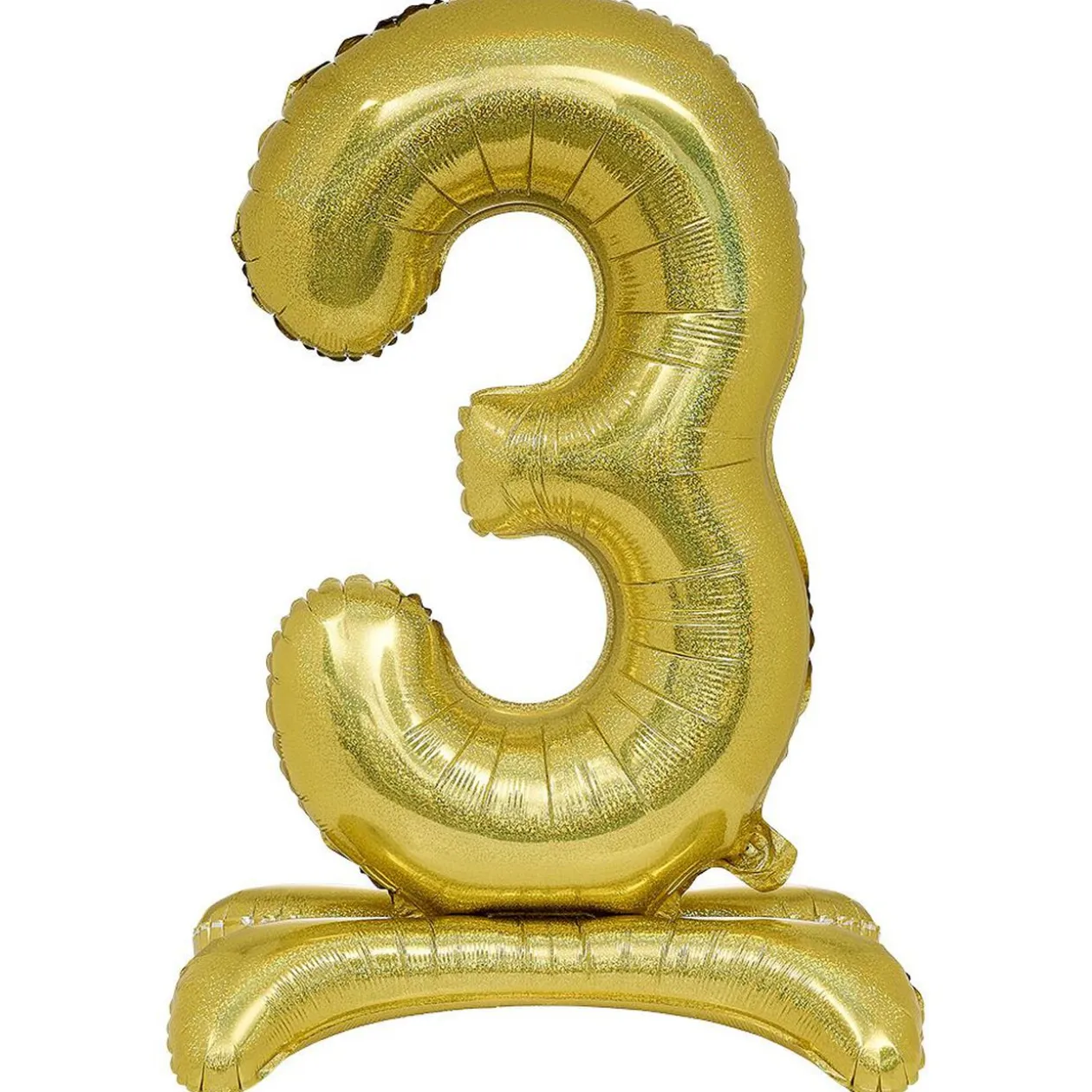 Ballon doré ou argenté en forme de chiffre 3 avec support.