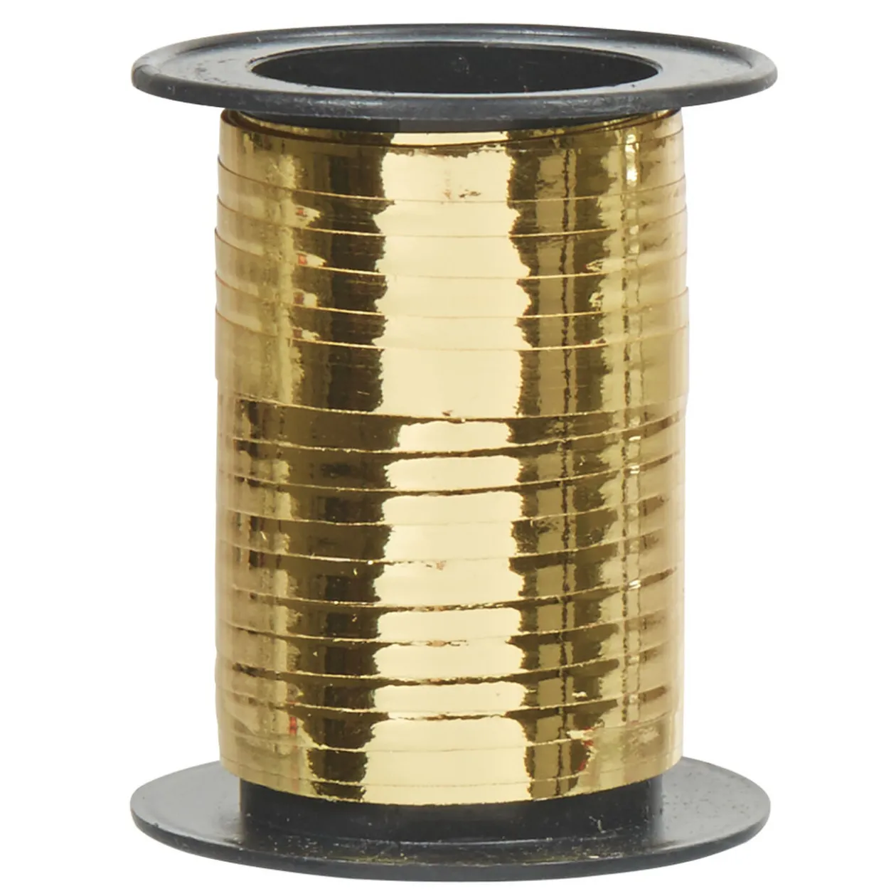 Bolduc doré, longueur 10 m et largeur 5 mm, plastique.