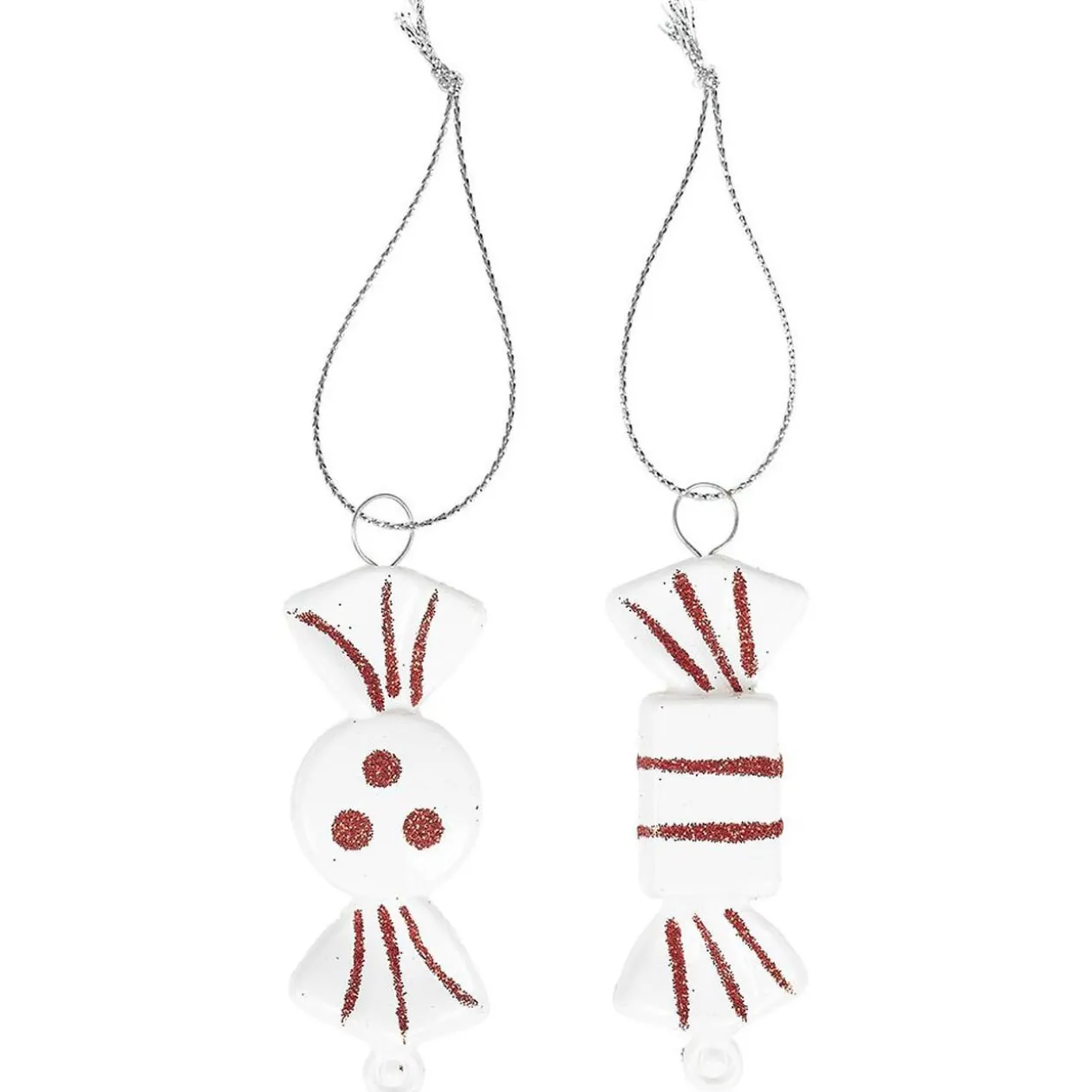 Lot de 9 petits bonbons rouges et blancs à suspendre au sapin pour fêter Noël avec une teinte traditionnelle.