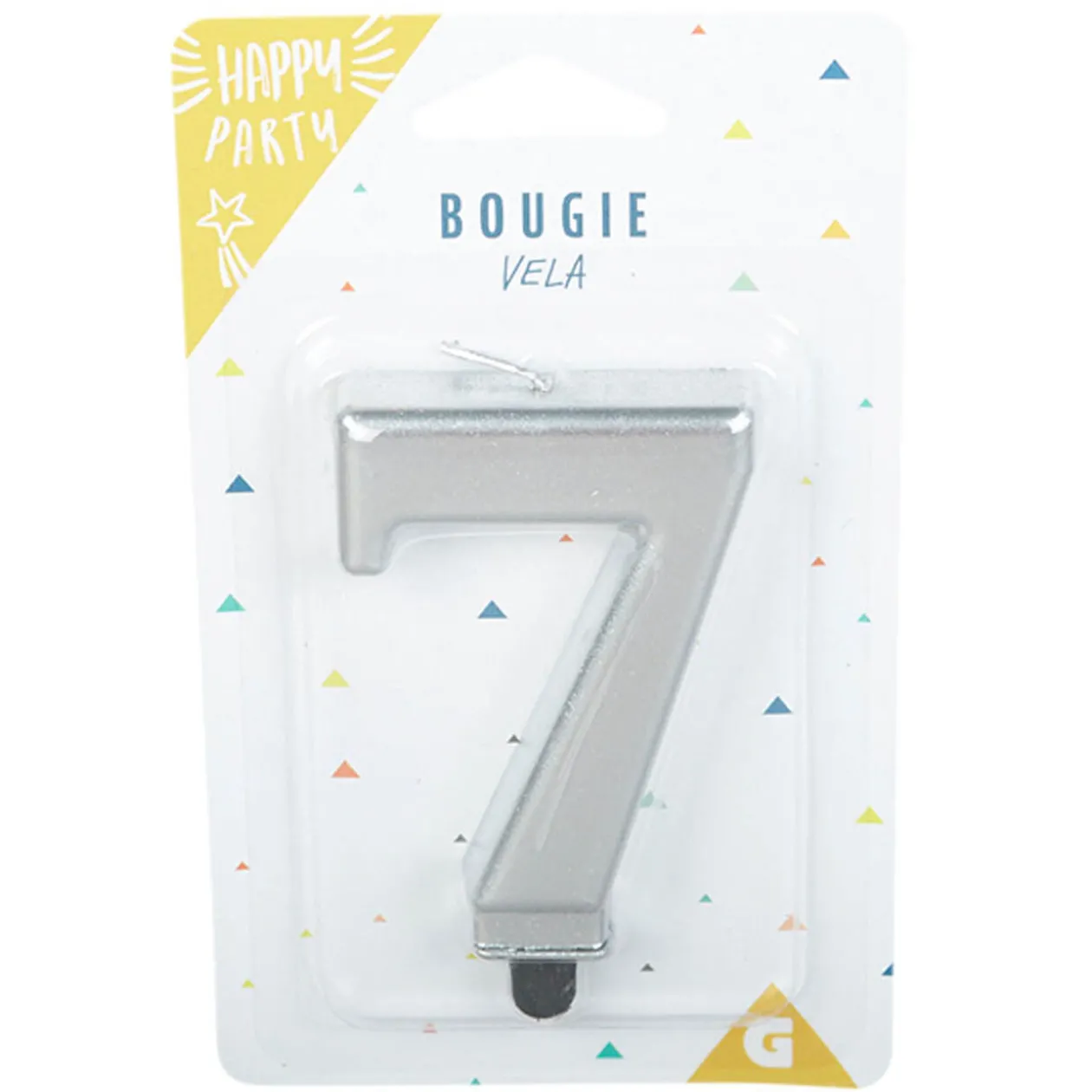 Bougie d’anniversaire, chiffre sept de couleur mate argentée.