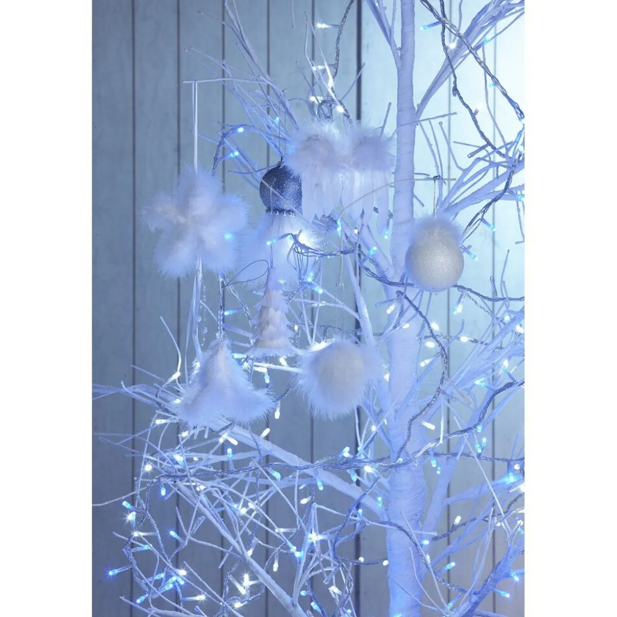 Boule de Noël plumes, Ø7 cm, plastique.
