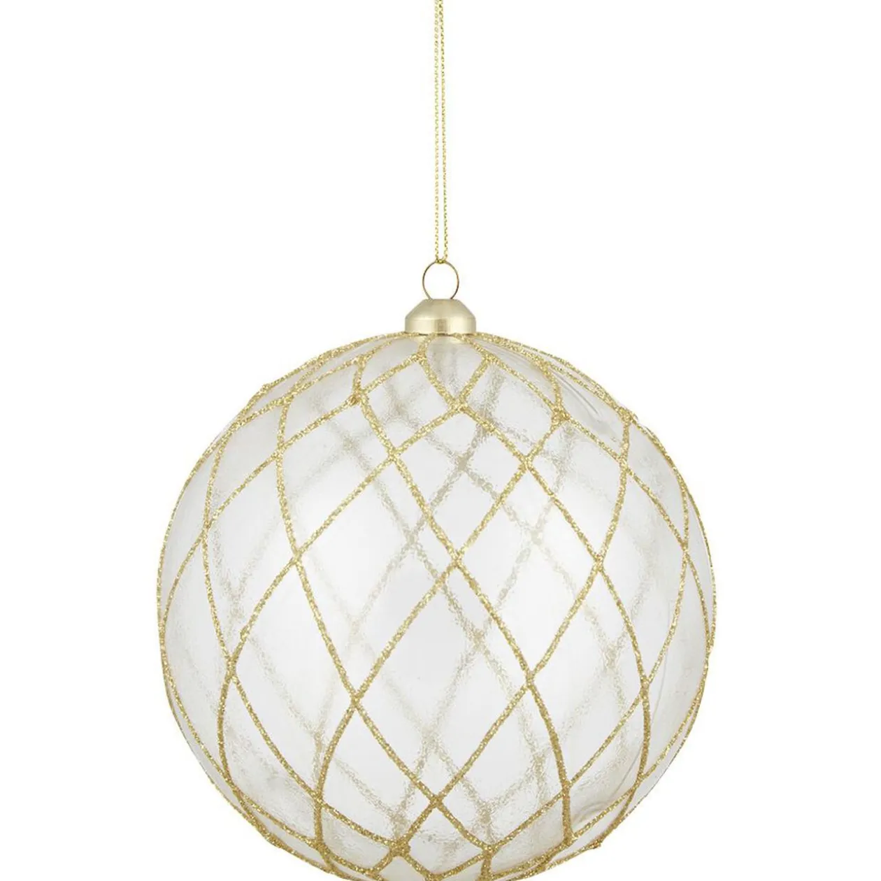Boule de Noël transparente avec des motifs dorés et à paillettes pour un effet de lumière sur votre sapin de Noël.