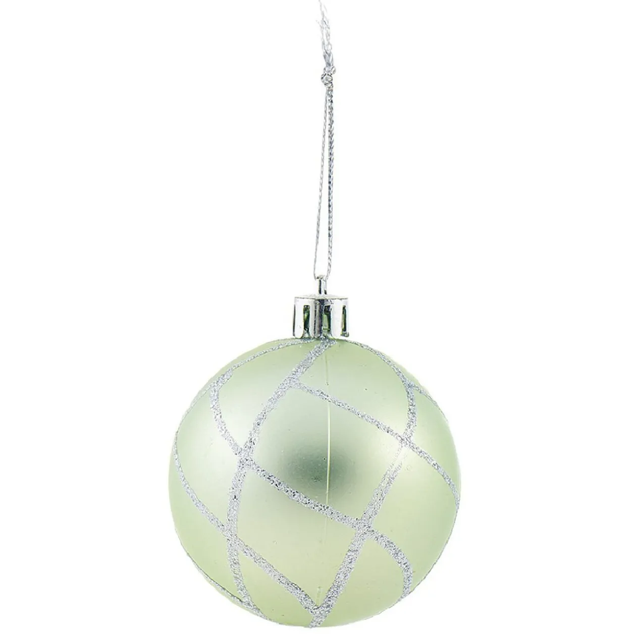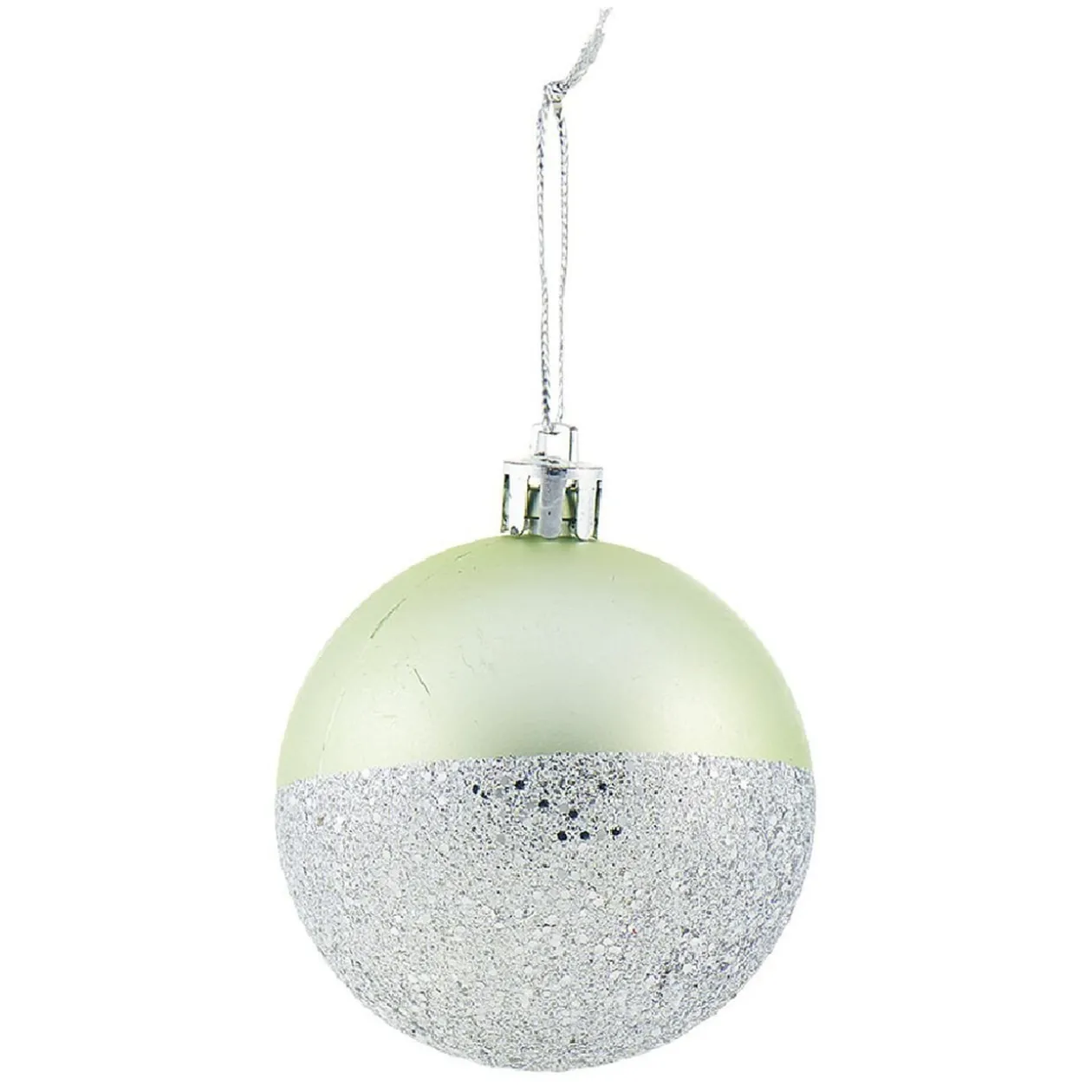 Lot de 6 boules de Noël au design original pailleté de couleur verte et argentée.