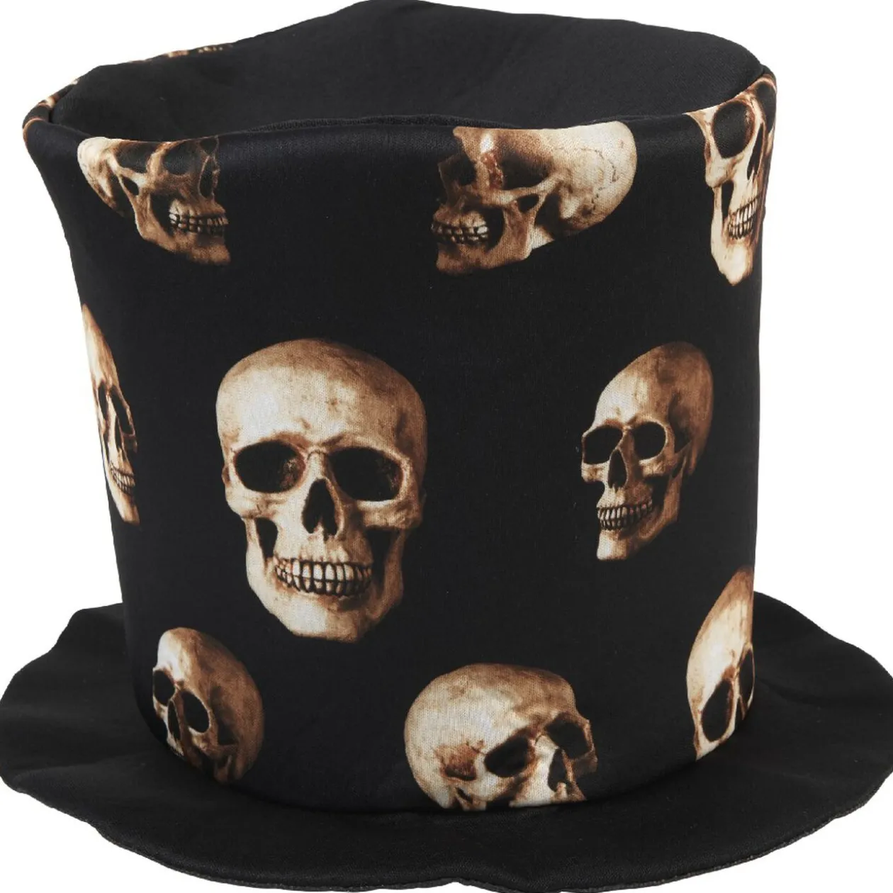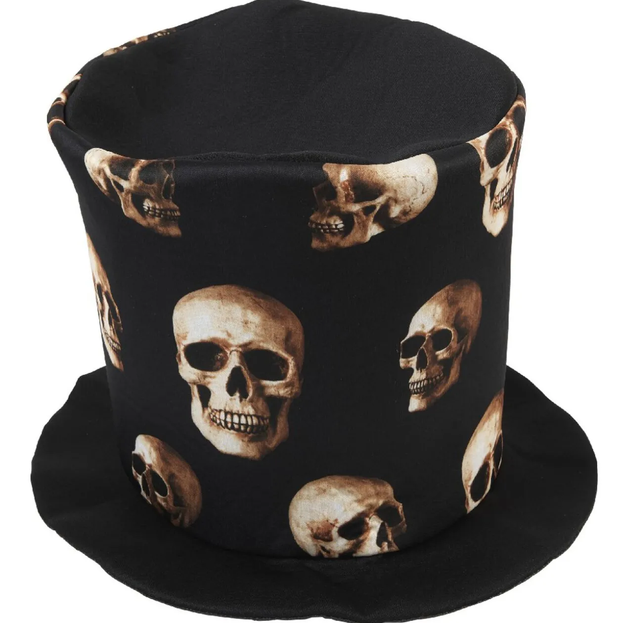 Pour un costume original ou le petit détail qui vous habille pour une soirée terrifiante, optez pour ce chapeau haut de forme au motifs têtes de mort et transformez-vous en magicien bizarre pour le soirée Halloween.