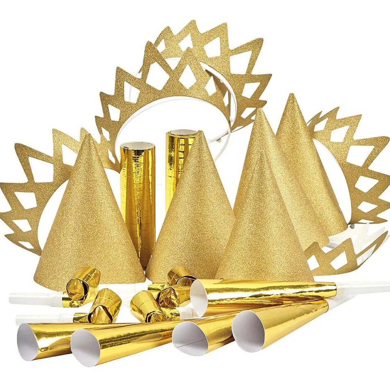 Kit de cotillons dorés ou argentés pour 5 personnes comprenant :