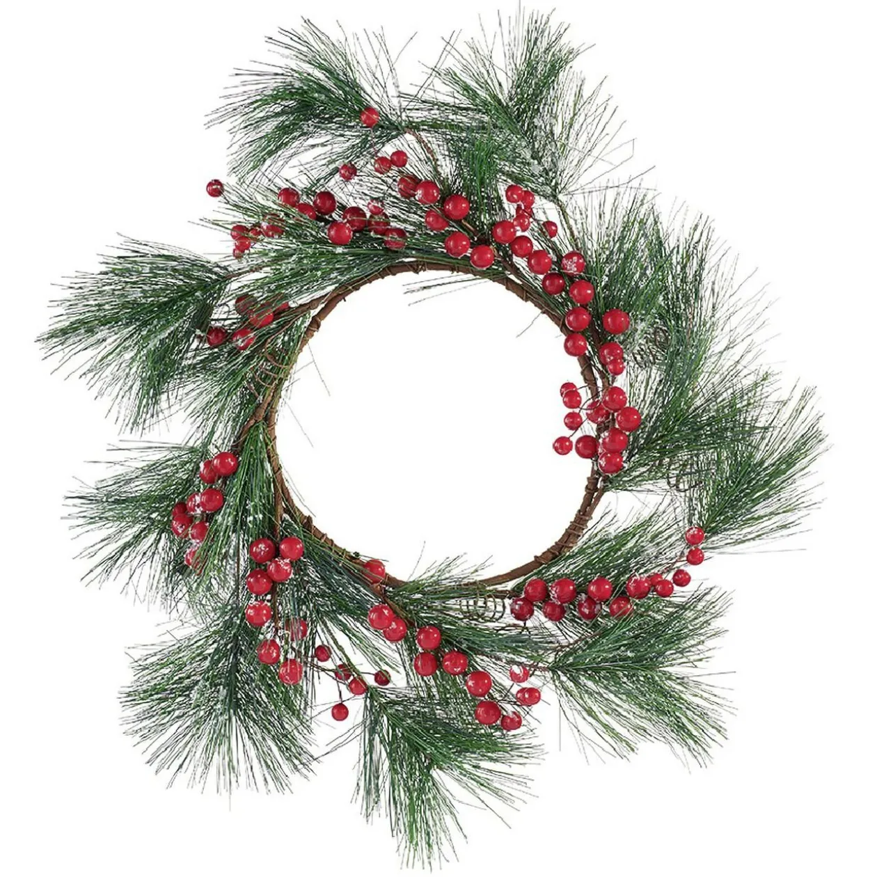 Couronne de Noël ronde branche sapin vert et baies rouges