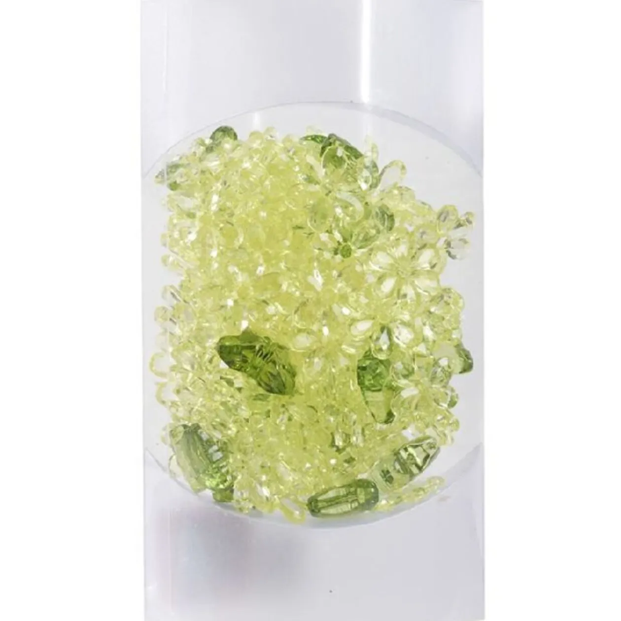 Fleurs de couleur jaune et papillons verts en plastique pour décoration. Poids net de 100 gr.