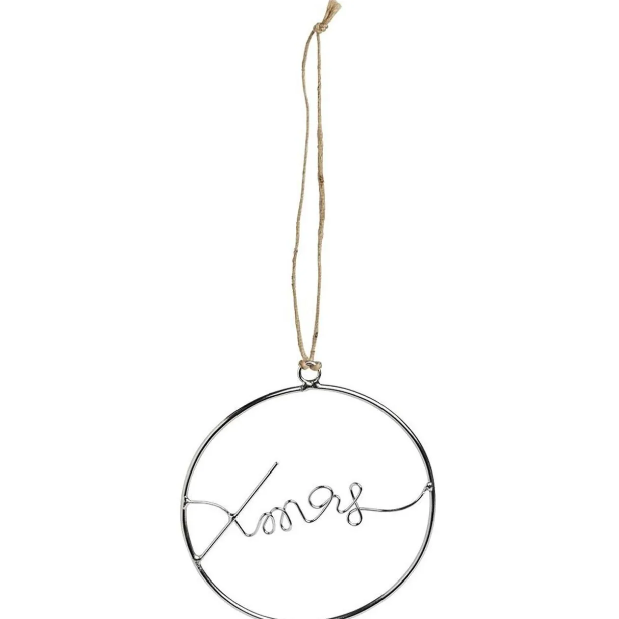 Décoration de Noël à suspendre anneau avec mot métal argenté Ø11cm