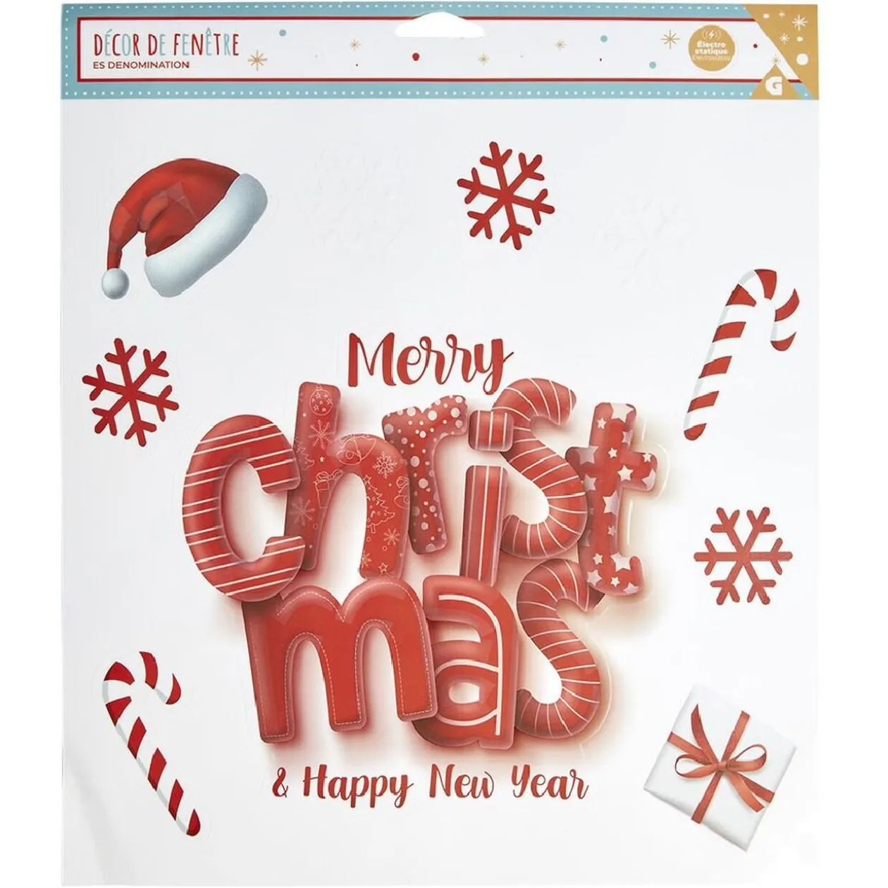 Cette décoration de fenêtre électrostatique avec inscription « Merry Christmas & Happy New Year » est idéale pour mettre votre intérieur dans l’ambiance des fêtes de fin d’année.