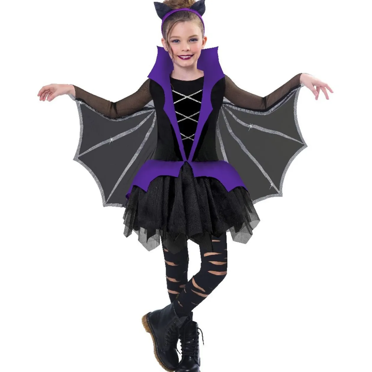 Avec ses grandes ailes cousues, cette superbe robe chauve-souris de couleur noire et violette sera du plus bel effet pour la soirée la plus terrifiante de l’année.