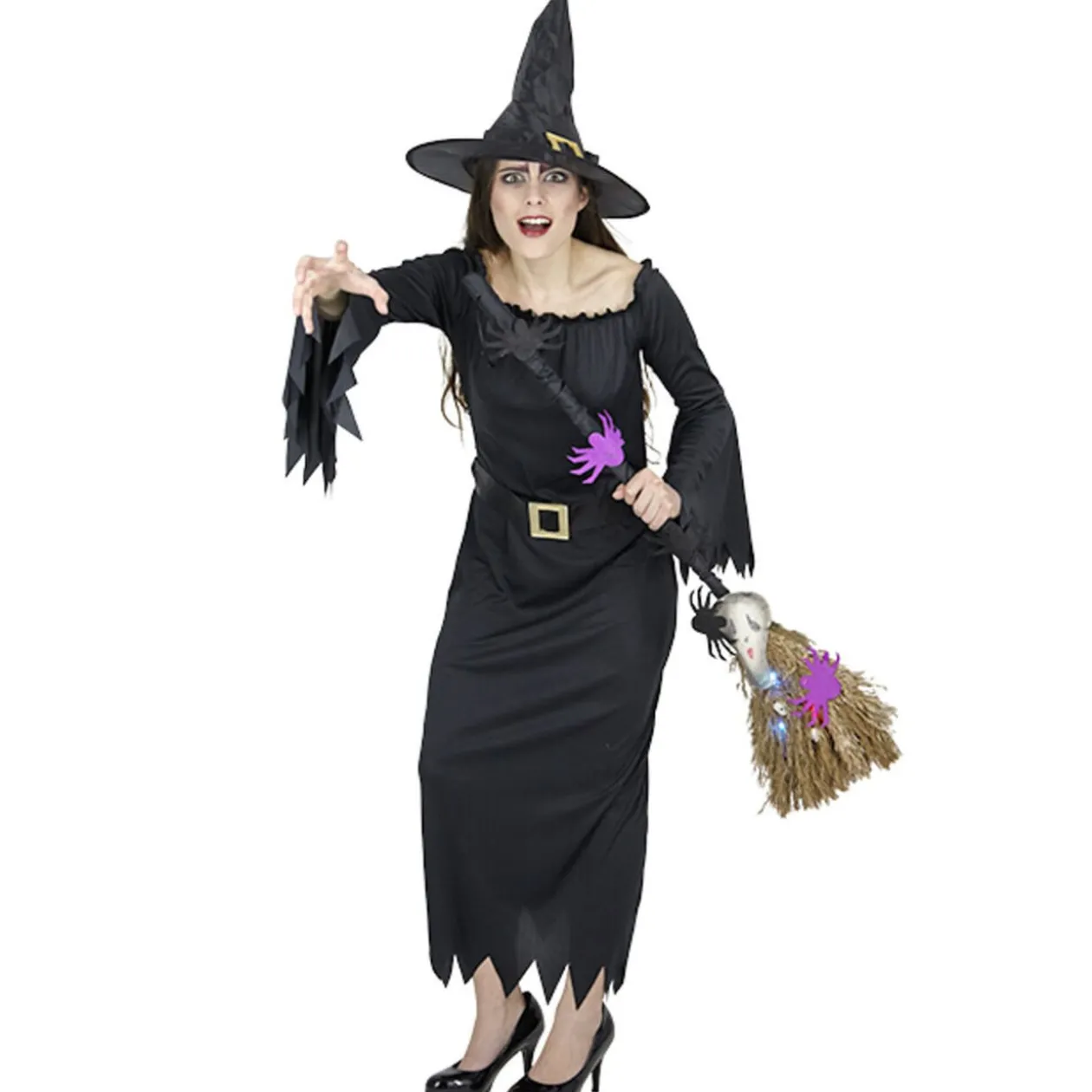 Déguisement femme sorcière comprenant 1 robe et 1 chapeau, polyester, taille 40.