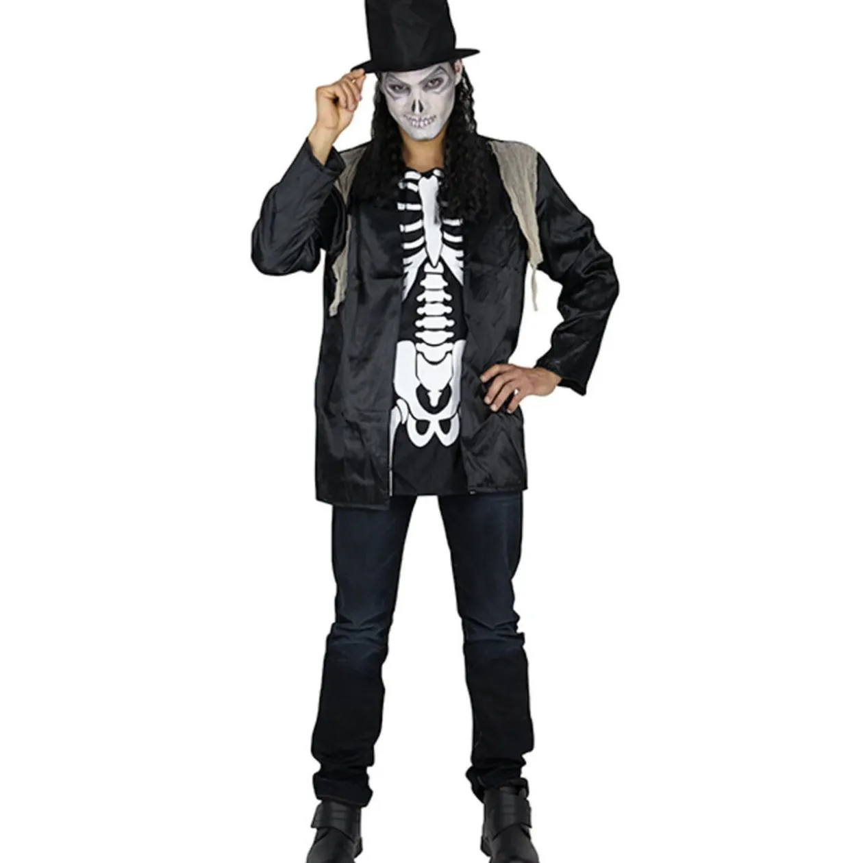 Déguisement homme squelette zombie comprenant 1 chapeau et 1 haut, polyester, taille 52.