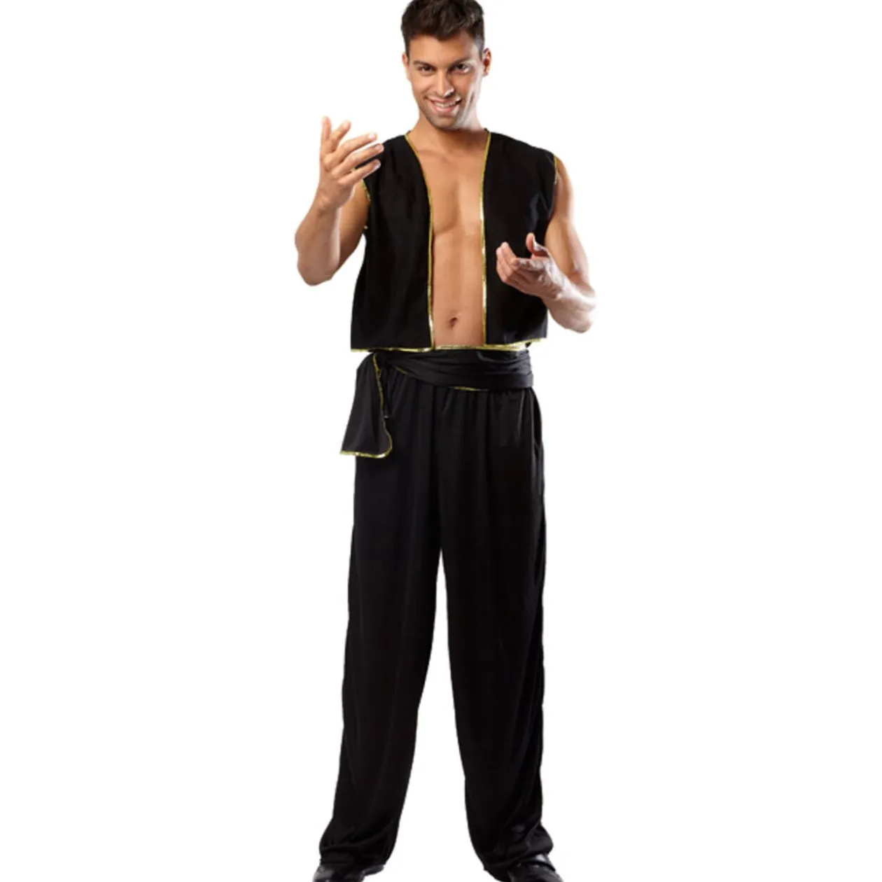 Déguisement homme sultan comprenant 1 pantalon, 1 gilet et 1 ceinture, 100 % polyester, taille 52.