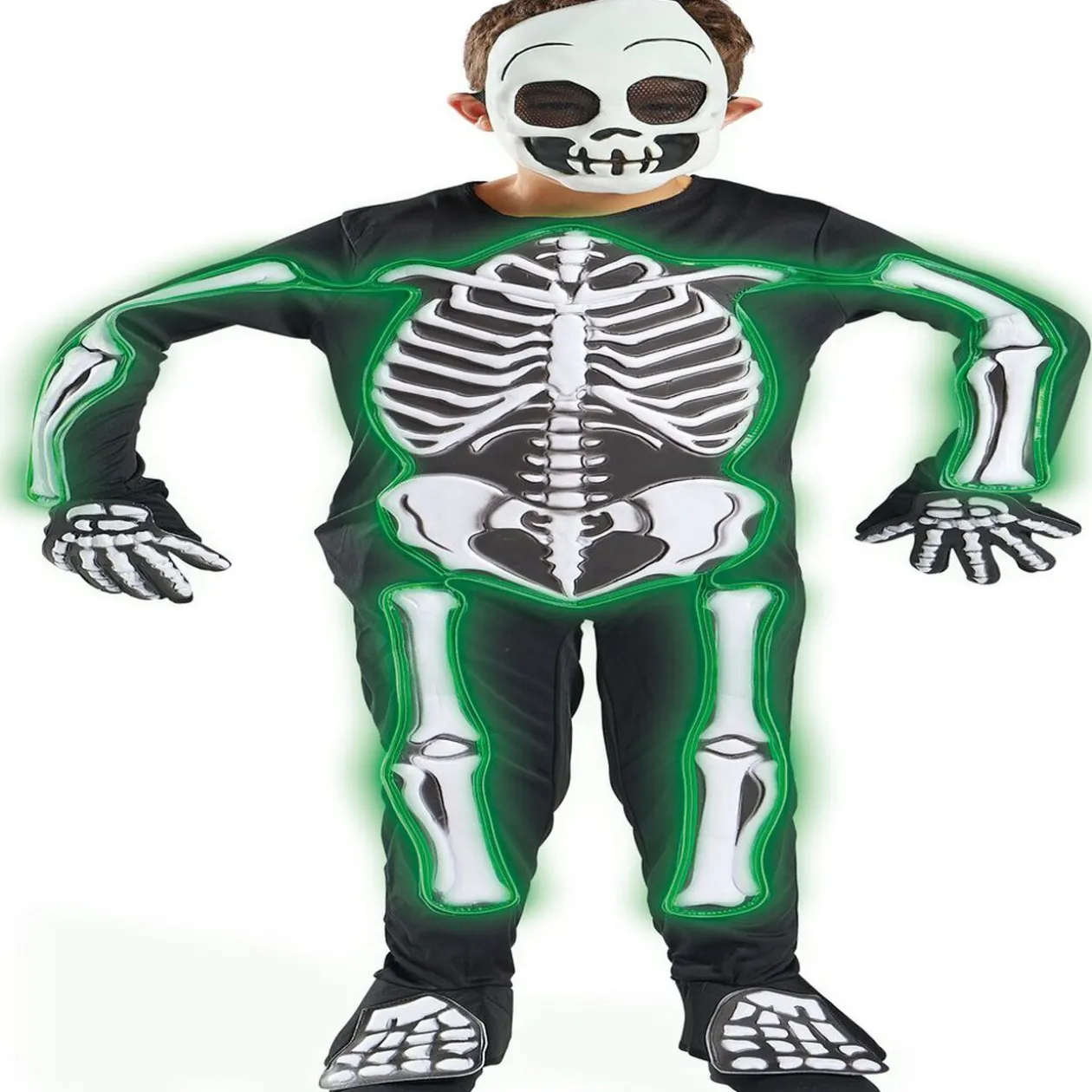 Déguisement squelette lumineux masque, gants, combinaison 7/10 ans