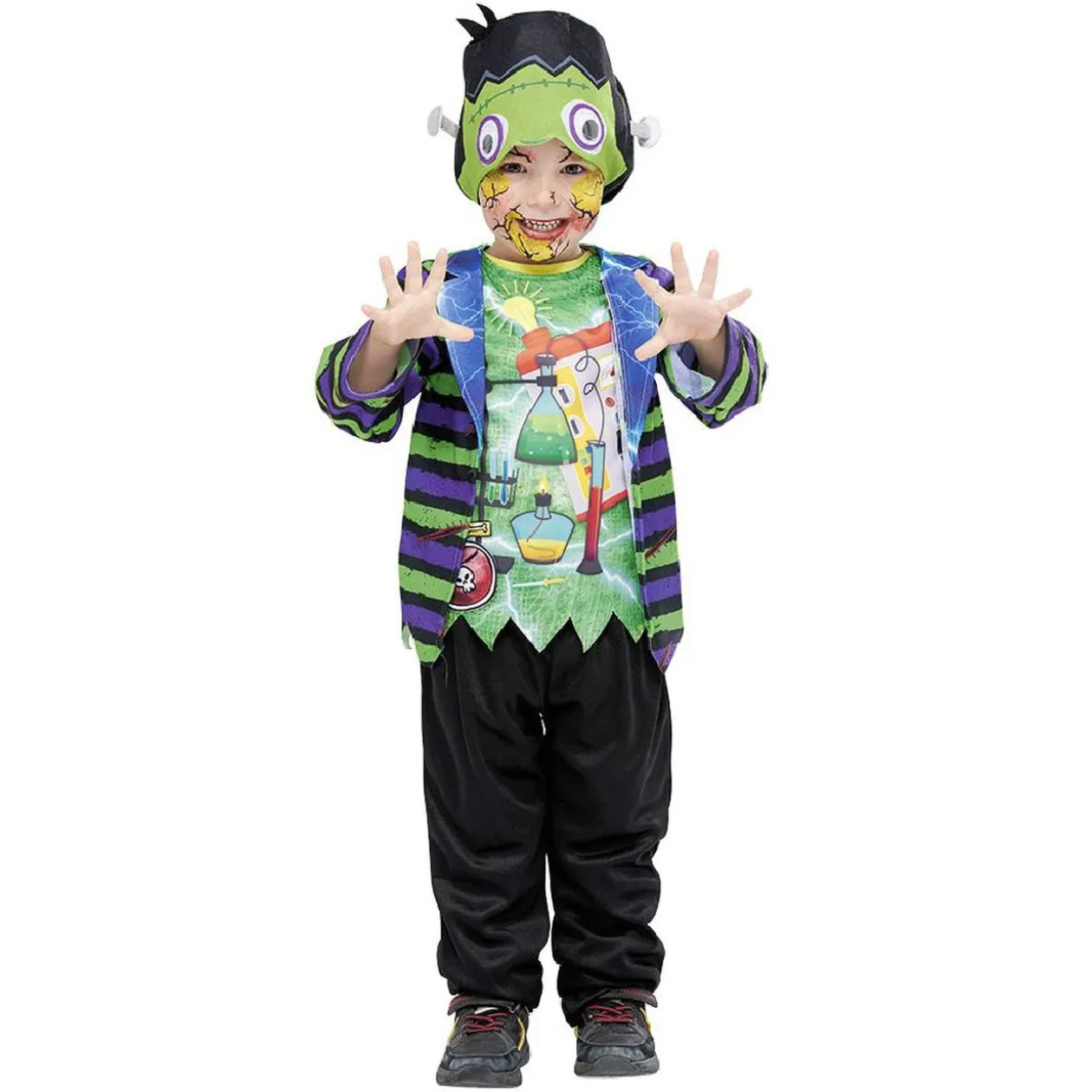 Un déguisement de zombie pour enfant de 4 ans. Comporte un chapeau, un tee-shirt et un pantalon.