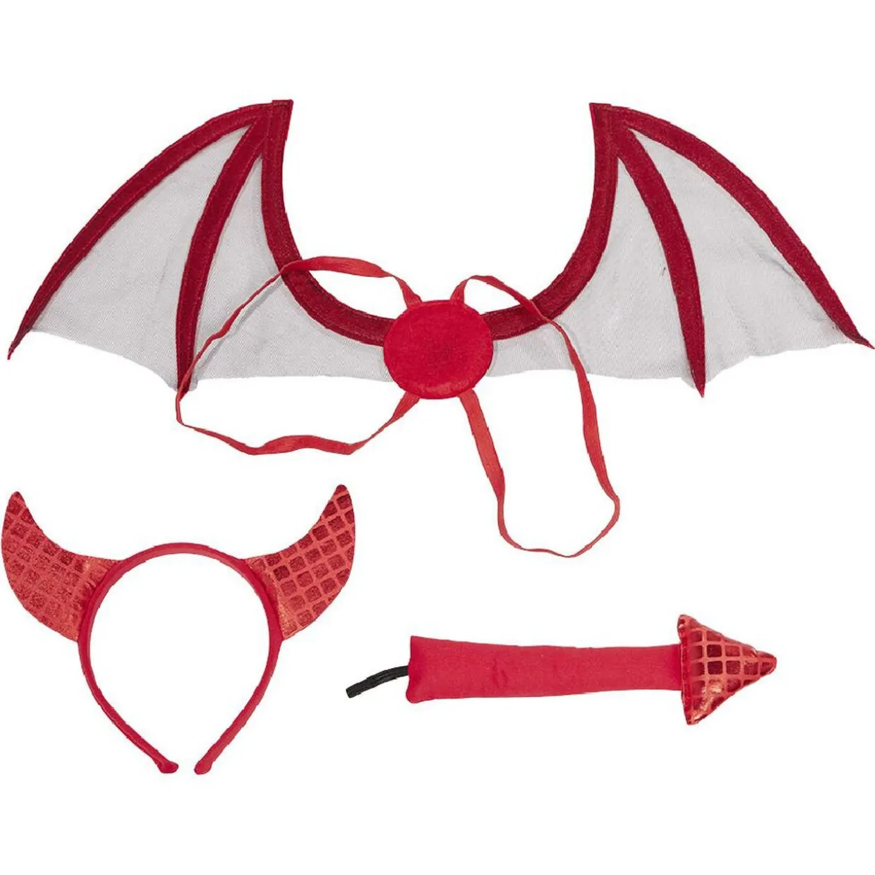 Un déguisement de diablesse pour fille. Comporte un tutu, un serre-tête, des ailes et une queue de diable.