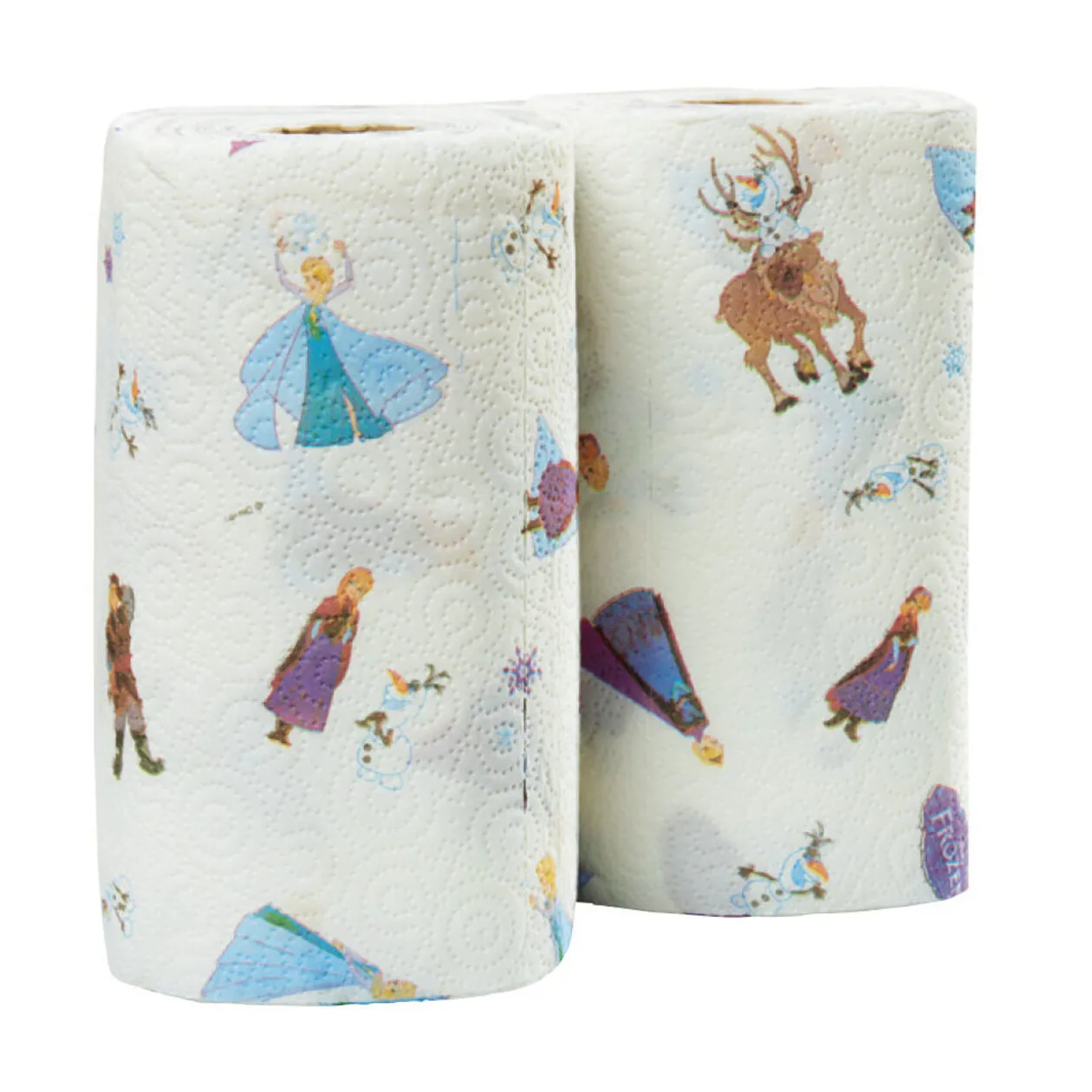 Lot de 2 rouleaux d’essuie tout en cellulose, à l’effigie des personnages de la Reine des neiges.