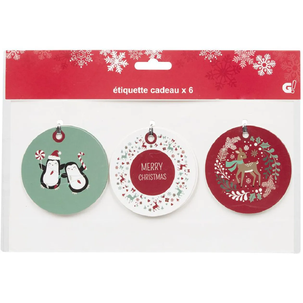 Lot de 6 étiquettes avec des motifs enfantins à accrocher à vos cadeaux de Noël pour y inscrire le nom de leur destinataire.