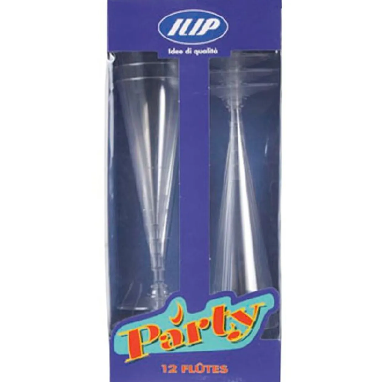 12 flûtes transparentes, cont. 11,5 cl, plastique.