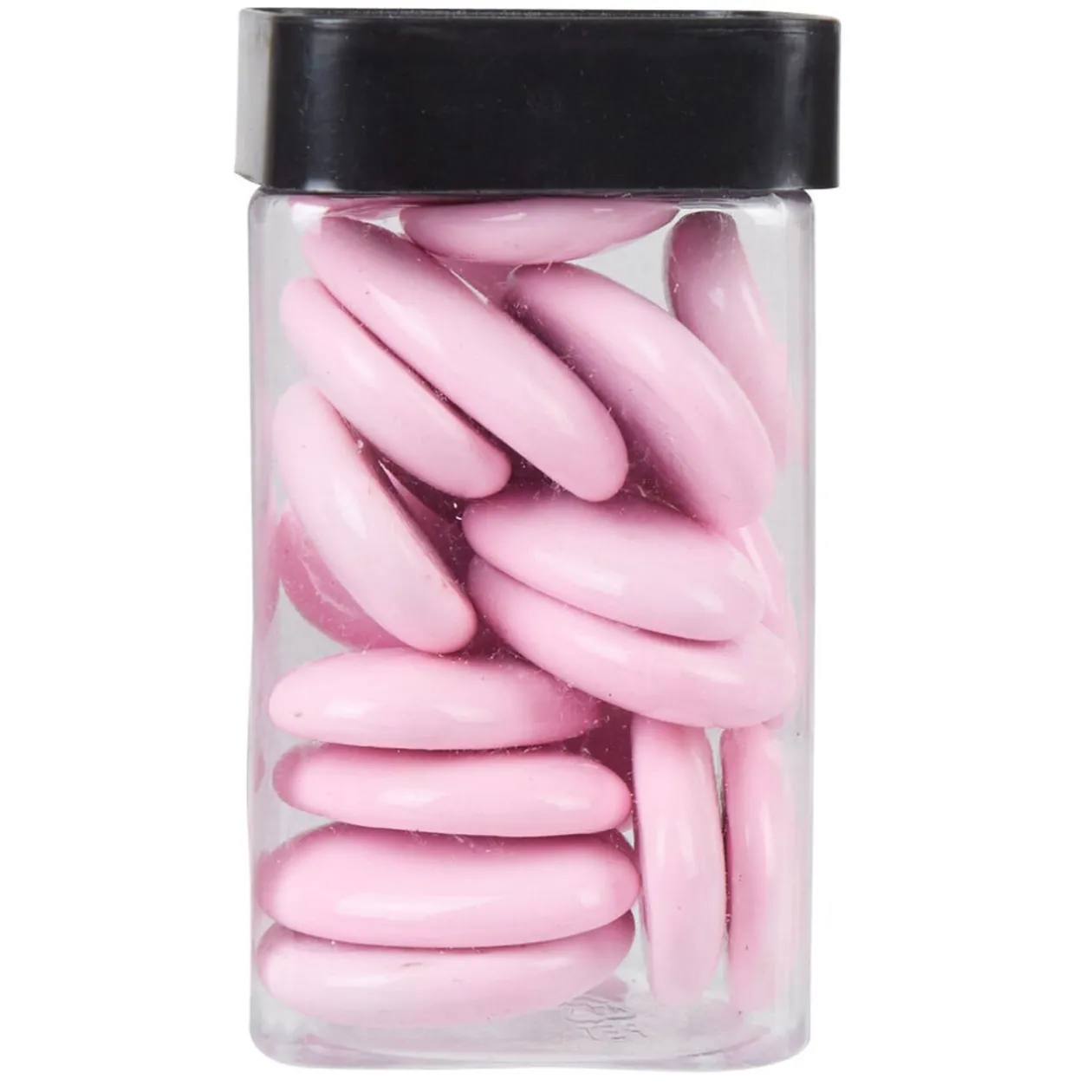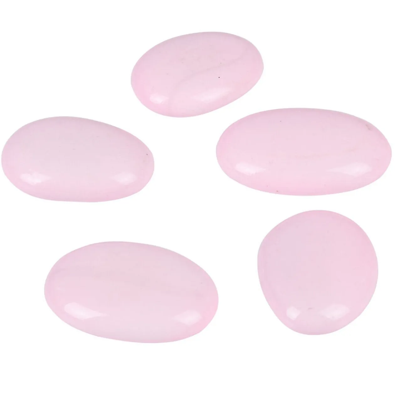 Boîte d’environ 20 galets décoratifs roses clair, cont. 400 gr, dim. 4×3 cm environ, verre.