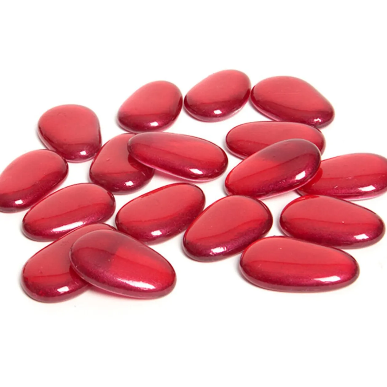 Galets décoratifs roses fuchsia transparents, ø 3,5 / 4,5 cm, verre, poids 300 gr. Idéal pour votre décoration de table de mariage.