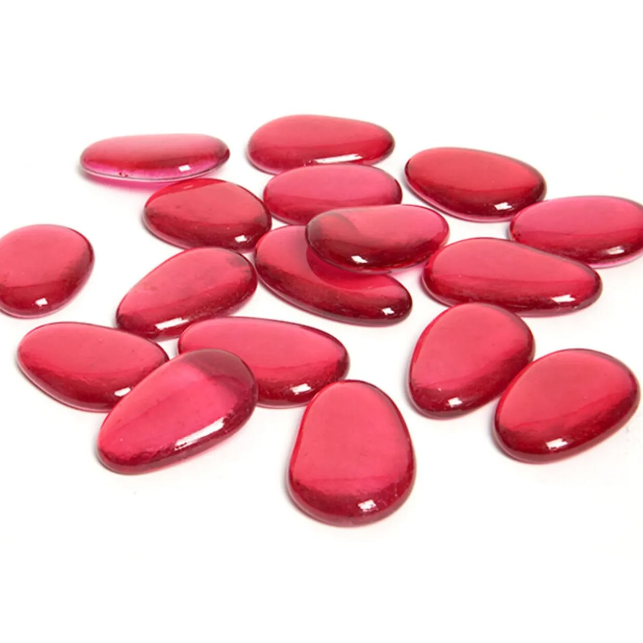 Galets décoratifs rouges transparents, ø 3,5 / 4,5 cm, verre, poids 300 gr. Idéal pour votre décoration de table de mariage.