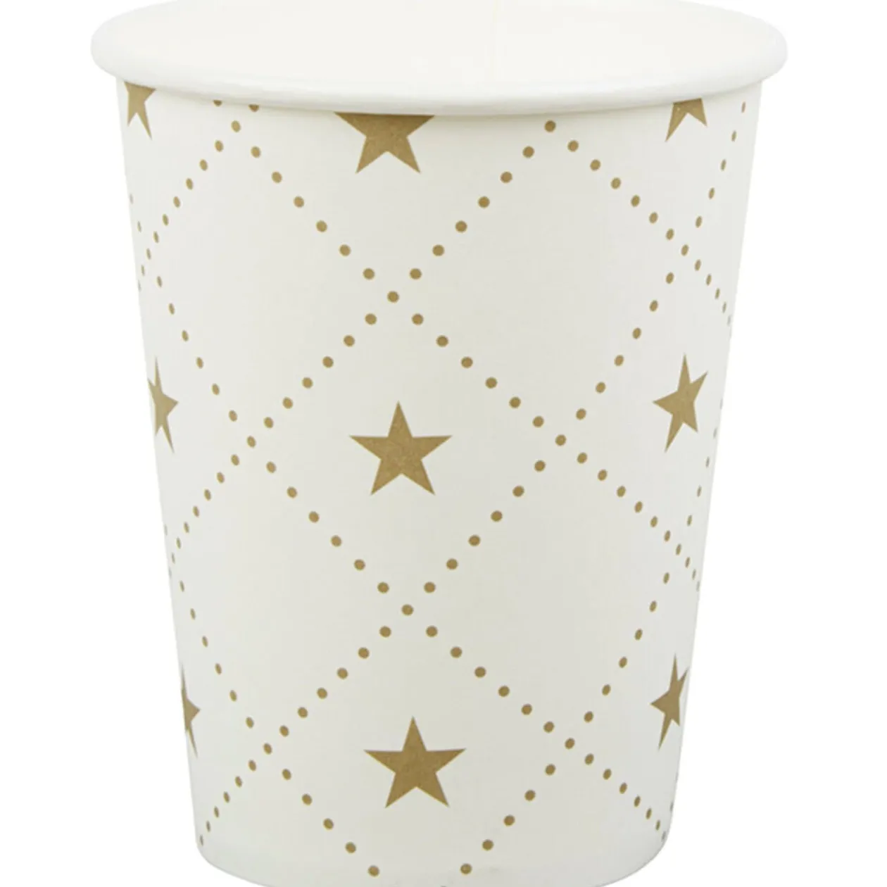 10 gobelets en carton blancs design étoiles dorées, cont. 25 cl.