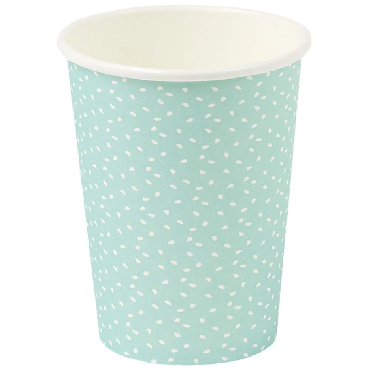 Lot de 10 gobelets en carton au coloris bleu et blanc d’une contenance de 25 cl.