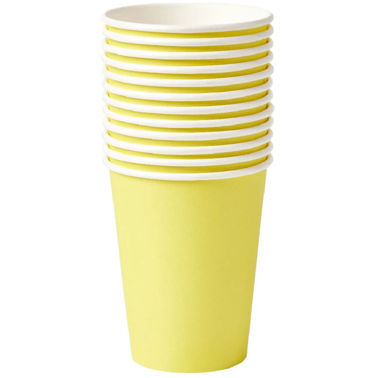 Pratique, ce lot de 12 gobelets en carton jaune est idéal pour tout évènement.