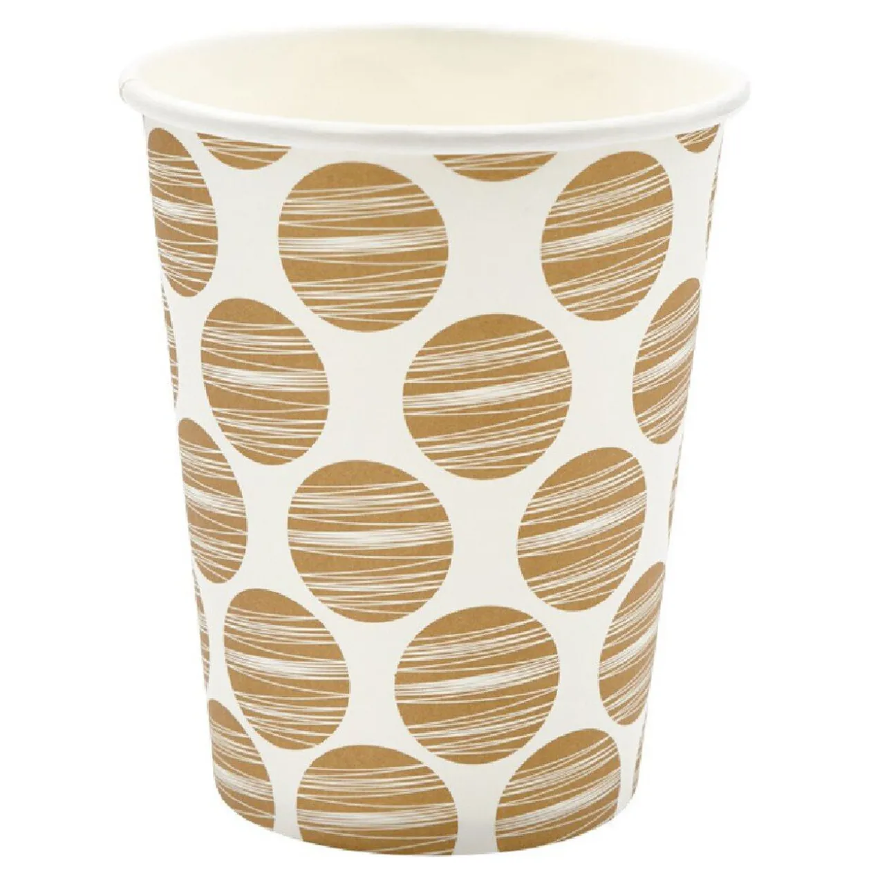 Lot de 10 gobelets jetables avec motifs grospois or et blancs, d’une contenance de 25 cl. Idéals pour toutes occasions festives !