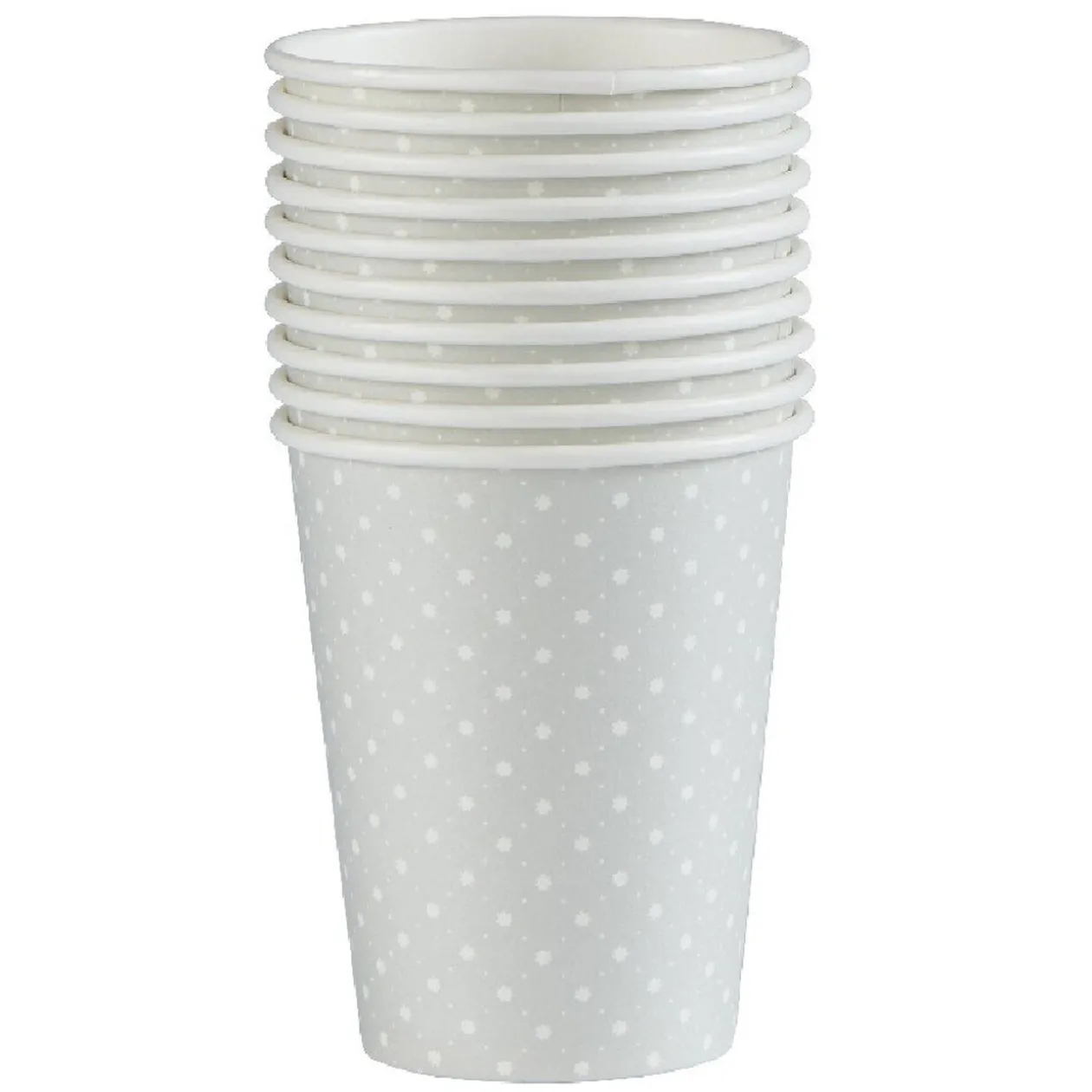 Lot de 10 gobelets jetables gris avec motifs petits pois blancs, d’une contenance de 25 cl. Idéals pour toutes occasions festives !