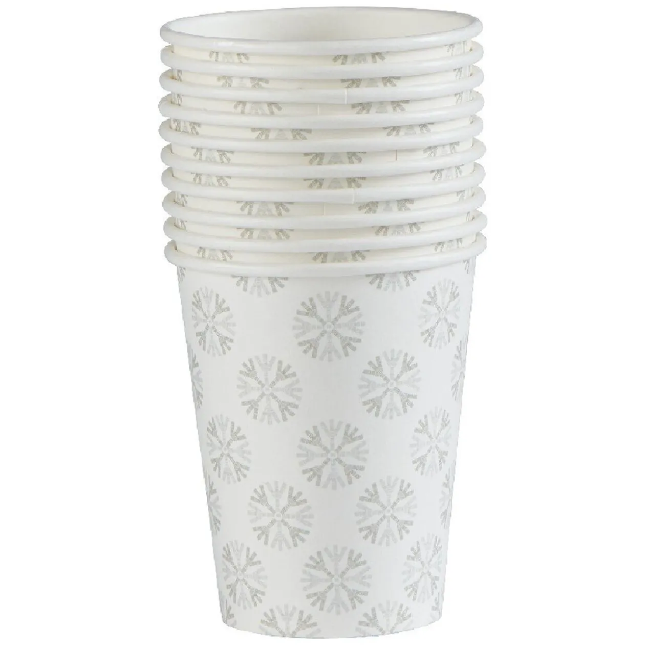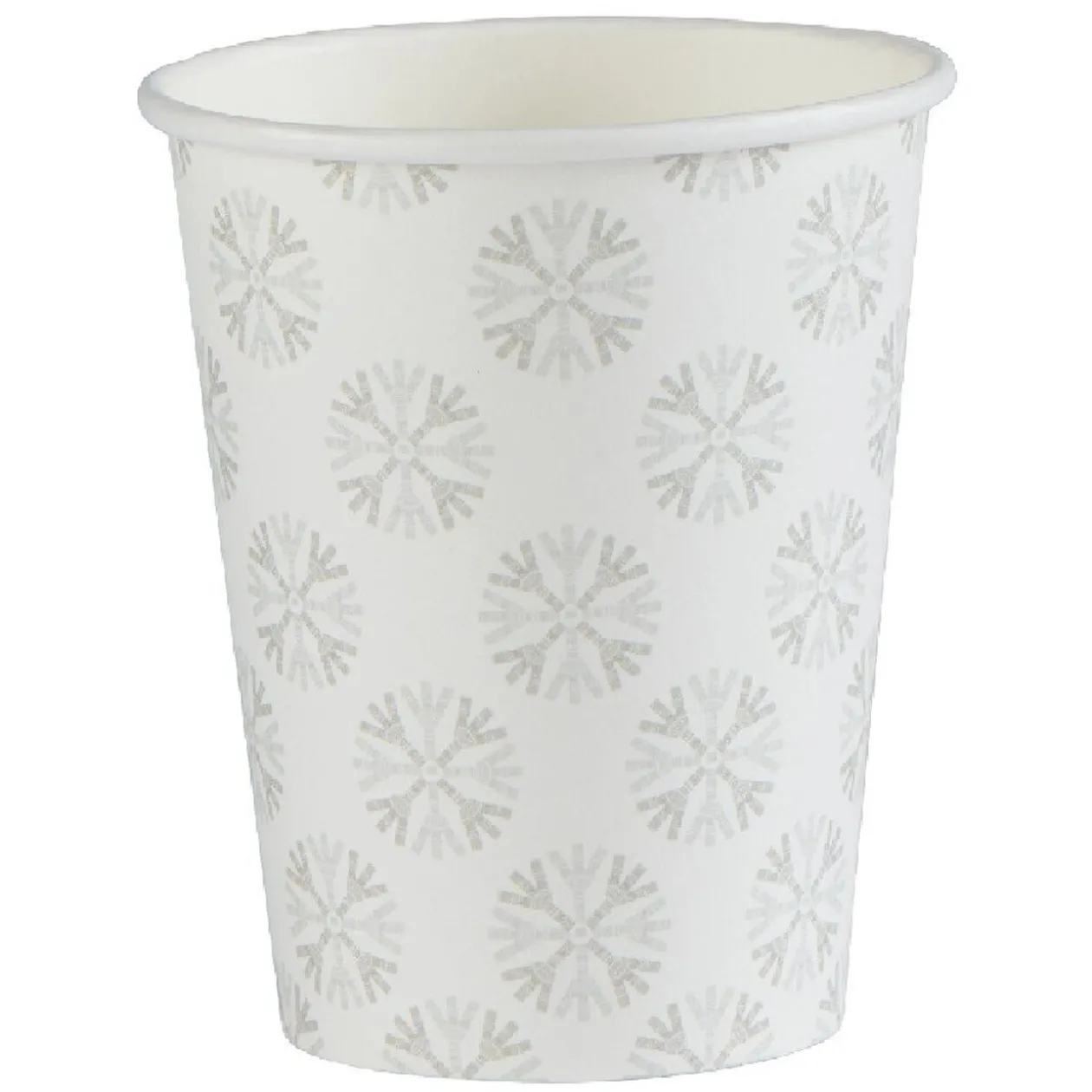 Lot de 10 gobelets jetables beiges avec motifs flocons de neige gris, d’une contenance de 25 cl. Idéals pour les fêtes de fin d’année !