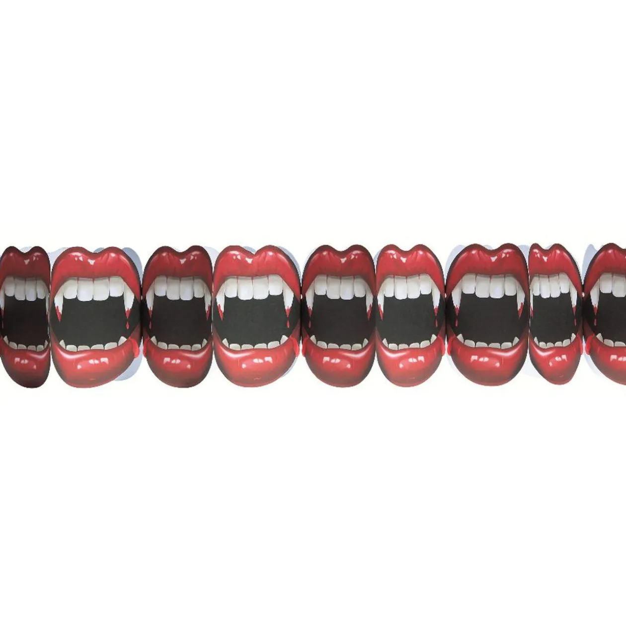 Guirlande de bouches de vampire, idéale pour décoration de salle à Halloween.
