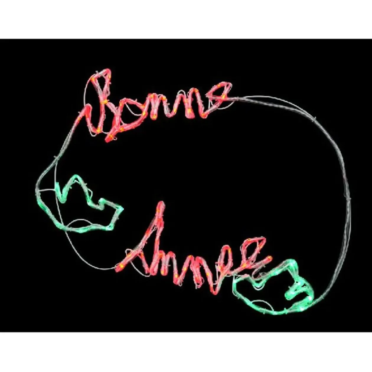 Guirlande lumineuse « bonne année », 70 LED, fixe, couleur rouge et vert, L. câble 3M, dim. H35 x L60 cm..