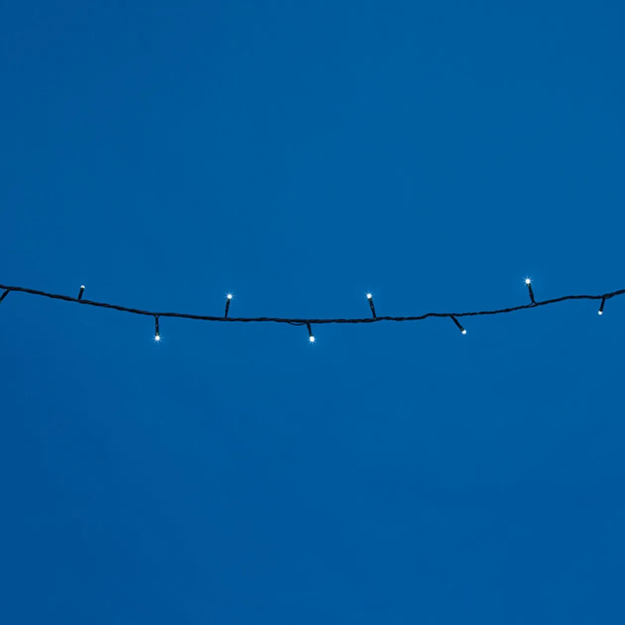 Guirlande électrique solaire offrant 5,9 m d’éclairage et 2 jeux de lumière avec ses 50 LEDs de couleur blanc froid.
