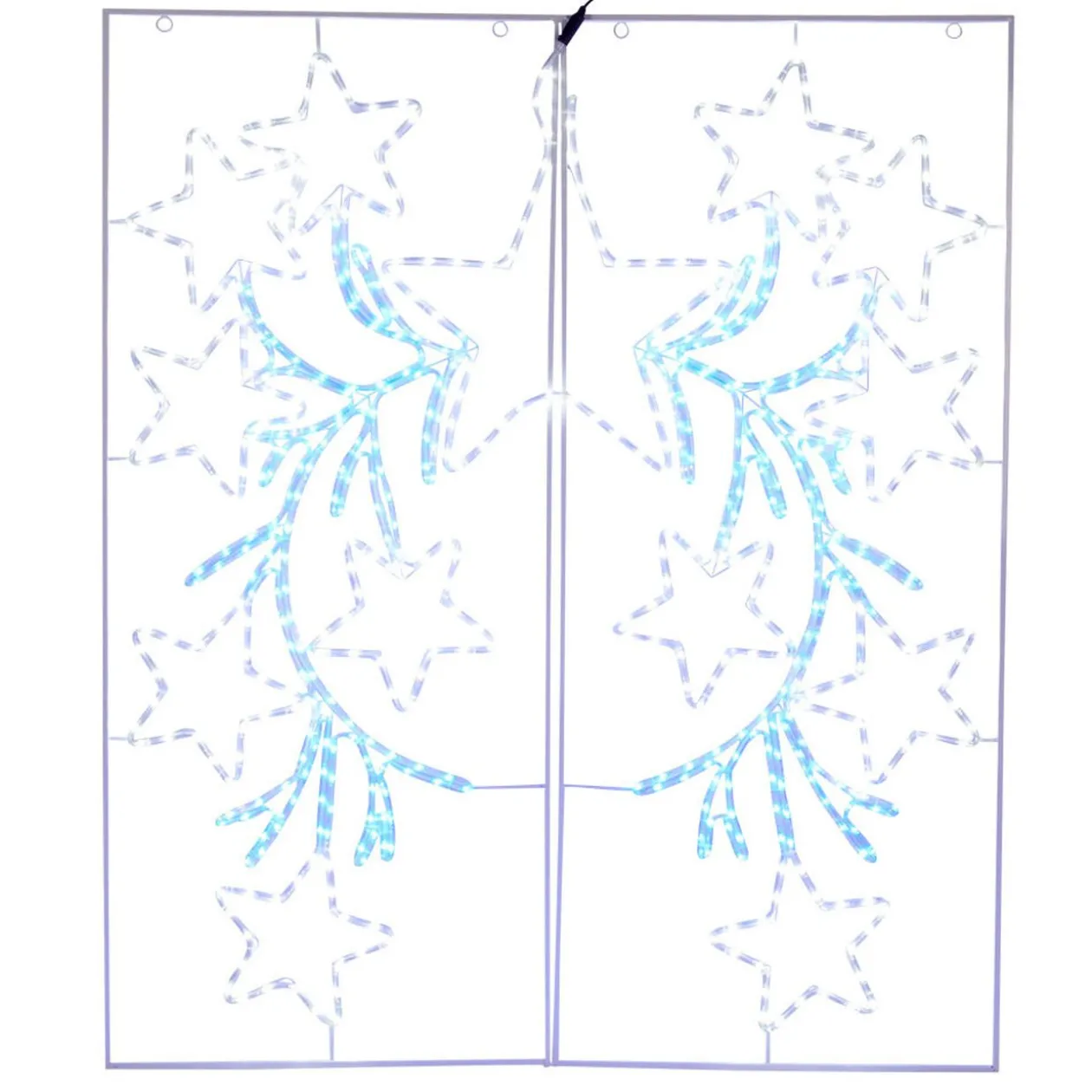 Guirlande étoile lumineuse, 600 LED blanches et bleues fixe.