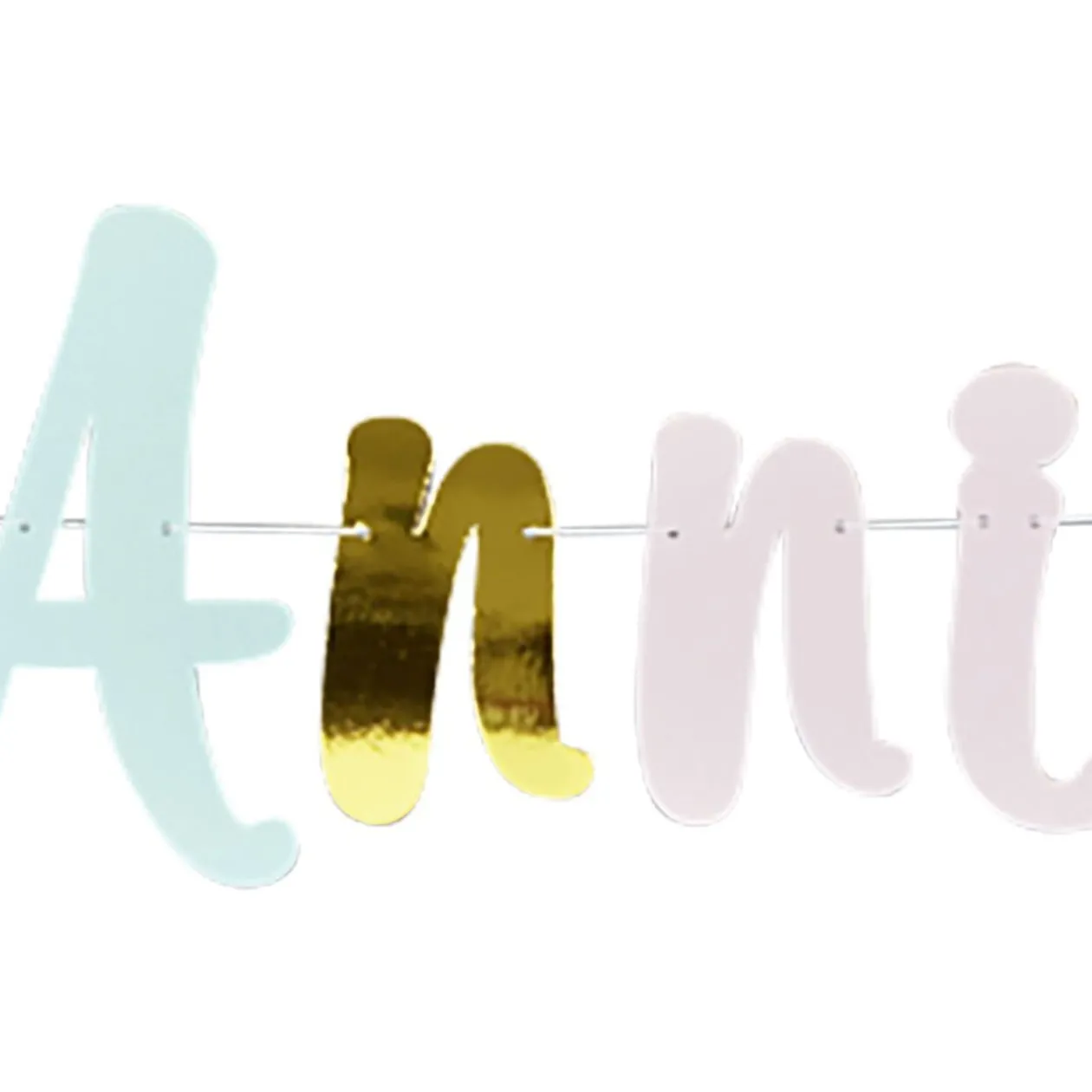 Pour fêter un anniversaire en beauté, n’oubliez pas d’accrocher la guirlande « Joyeux anniversaire » de couleur rose, vert et doré.
