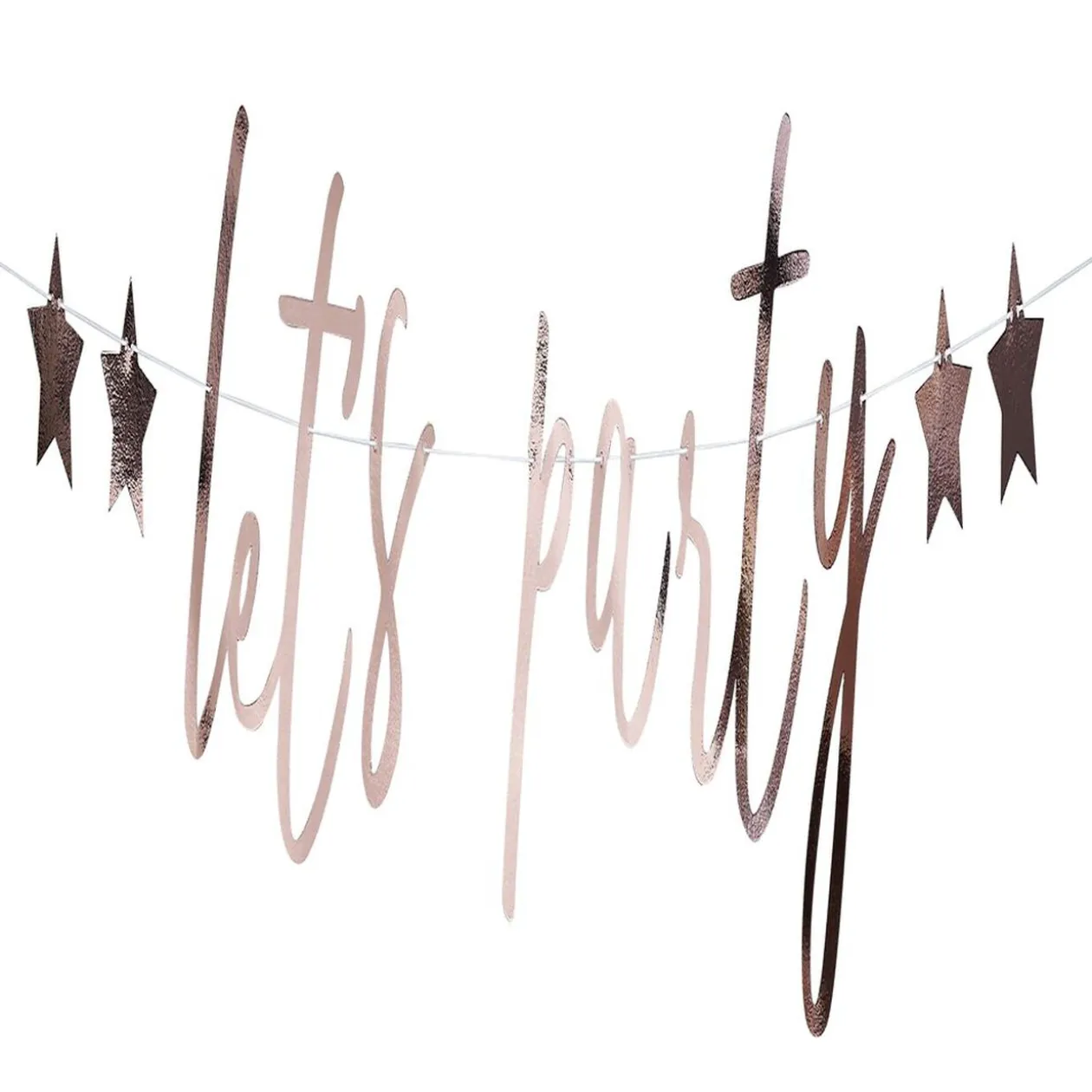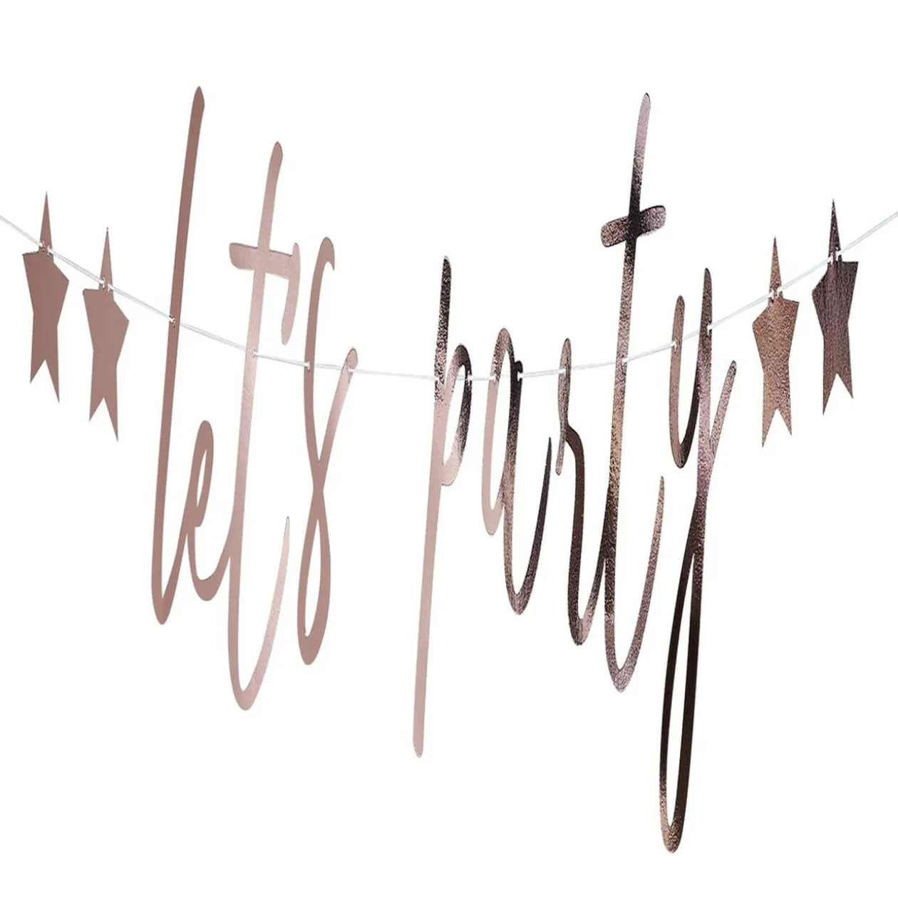 Votre intérieur sera fin prêt à recevoir vos convives pour les fêtes de fin d’année grâce à cette guirlande rose gold en papier, avec inscription « let’s party ».
