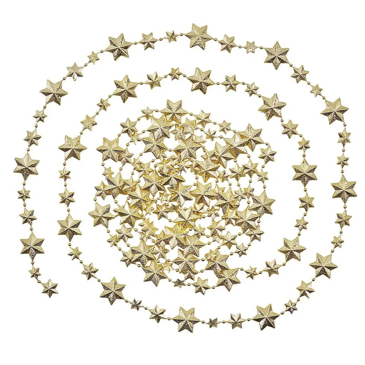 Guirlande composée de 500 minis étoiles dorées de 150 cm de longueur, idéal pour apporter une ambiance festive à votre décoration de Noël.