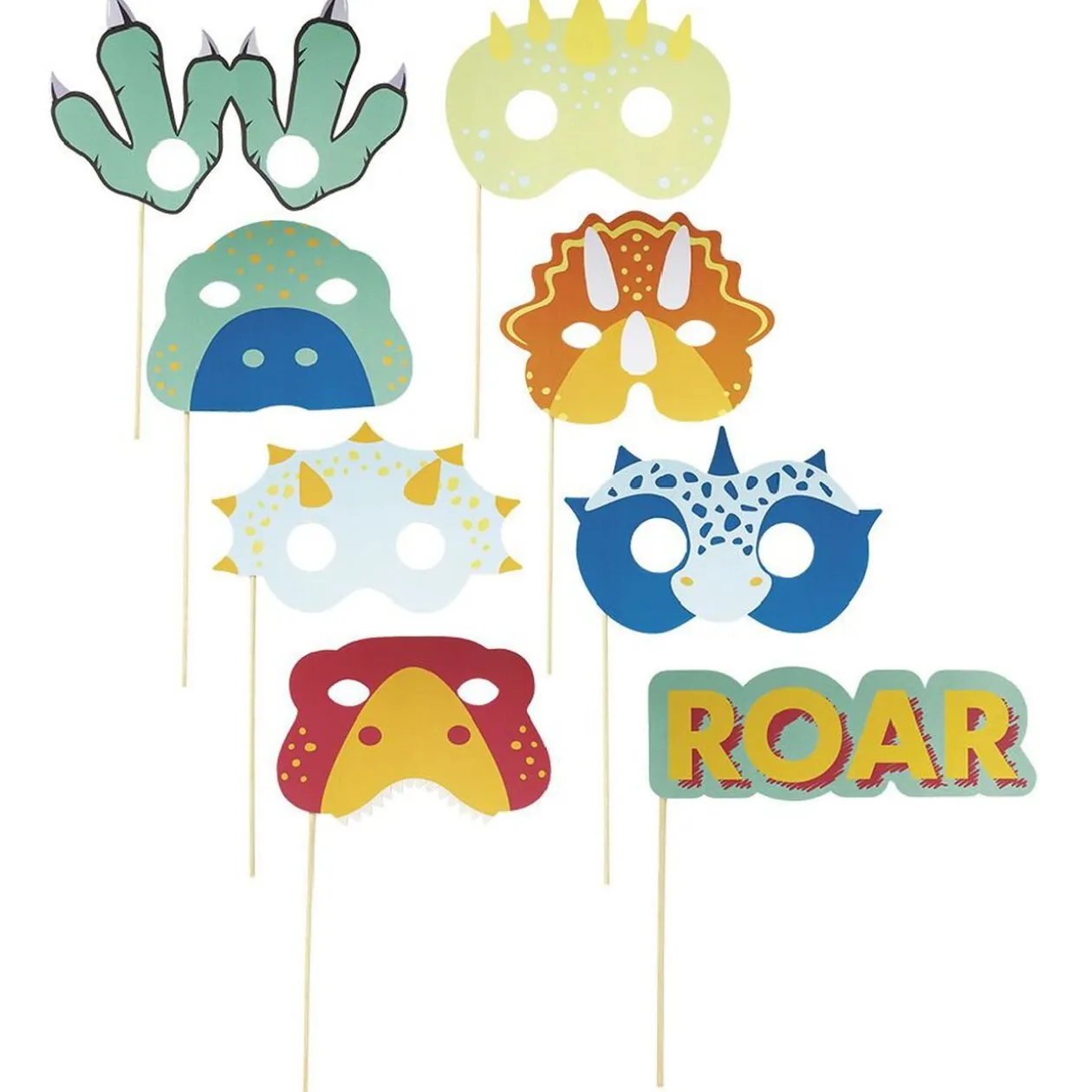 Comprend 8 masques de dinosaures dont 1 photobooth à inscription ROAR, le kit idéal pour faire de chaque instant un souvenir inoubliable en permettant à vos petits aventuriers de se déguiser et de s’amuser devant l’objectif !