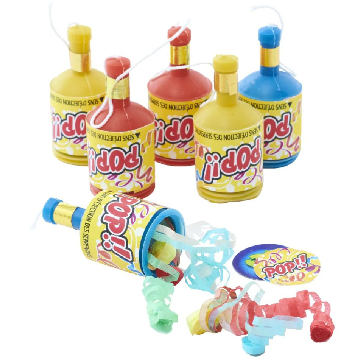 6 lance-serpentins multicolores Pop.