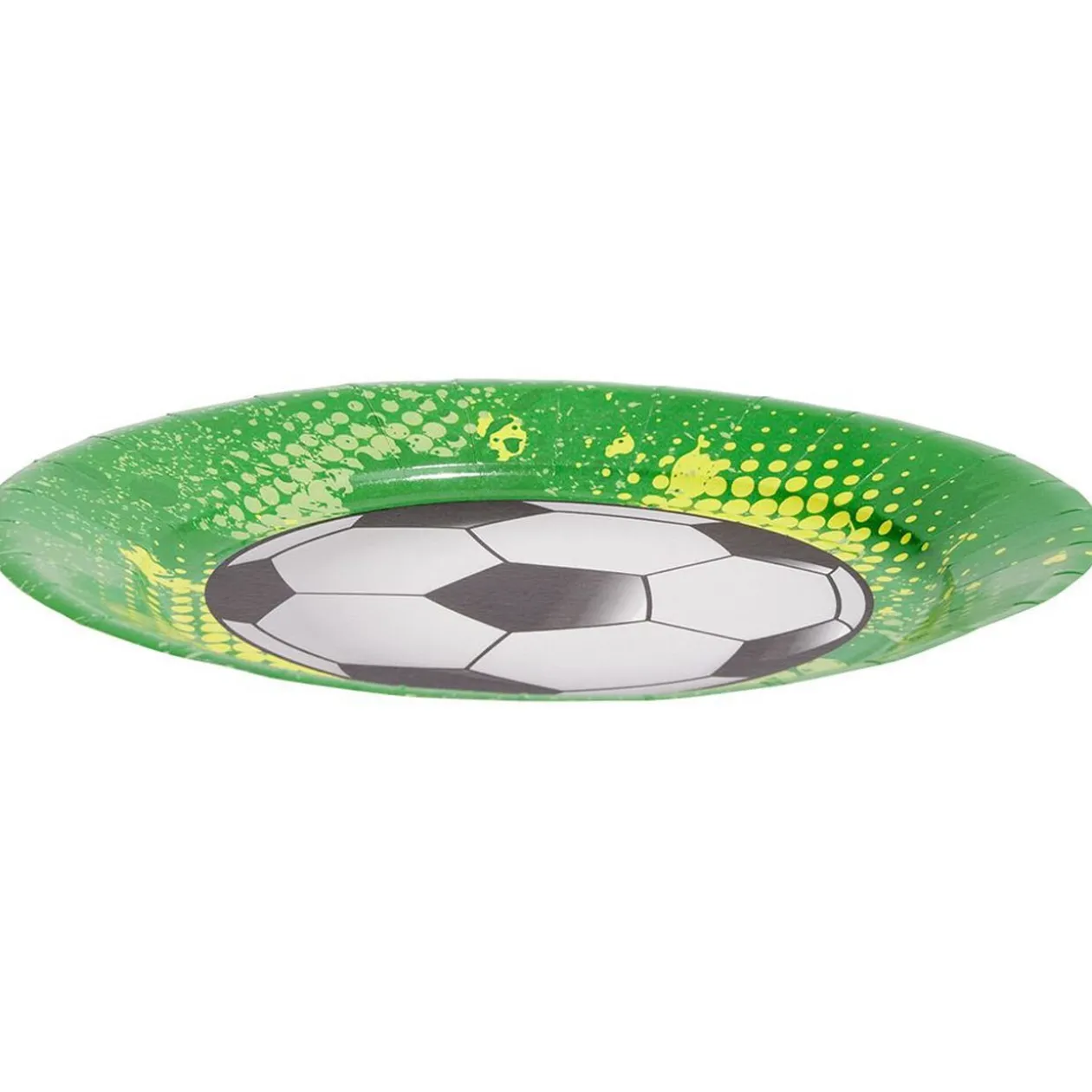 Lot de 10 assiettes en carton imprimé sur le thème de la Coupe du Monde de Football. Idéal pour décorer vos soirées de match!