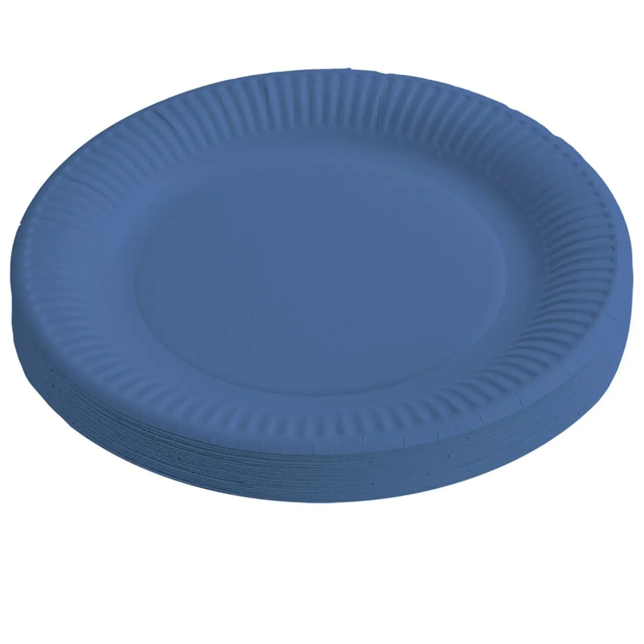 Lot de 10 assiettes jetables en carton uni bleu.