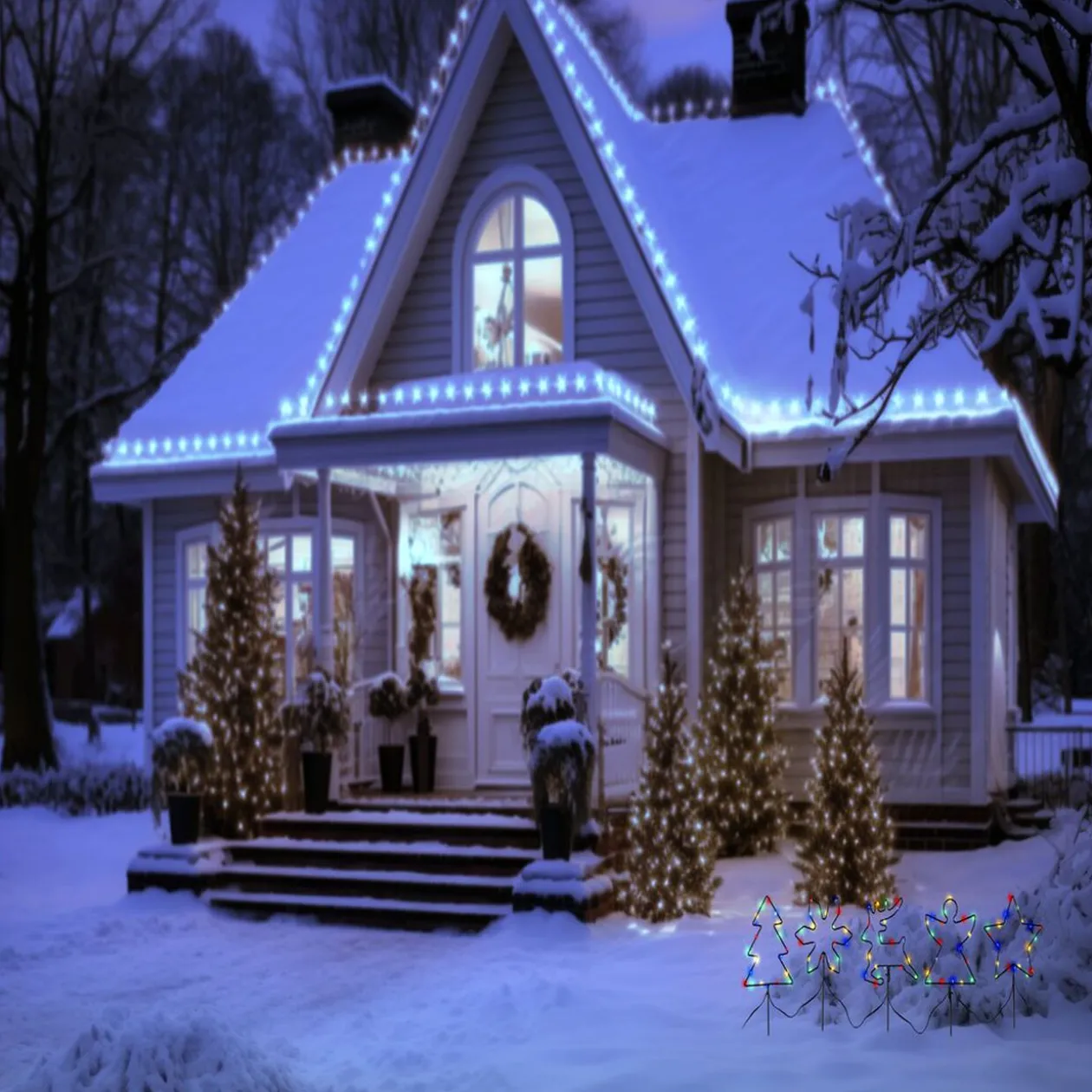 Illuminez vos fêtes avec ce lot de 5 pics lumineux à planter, comprenant un sapin, un flocon, un renne, un ange et une étoile.