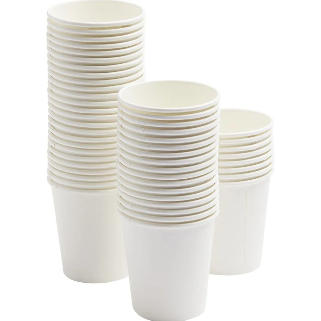 Lot de 50 gobelets en carton unis blancs, simples et basiques, indispensables pour tous vos repas et évènements.
