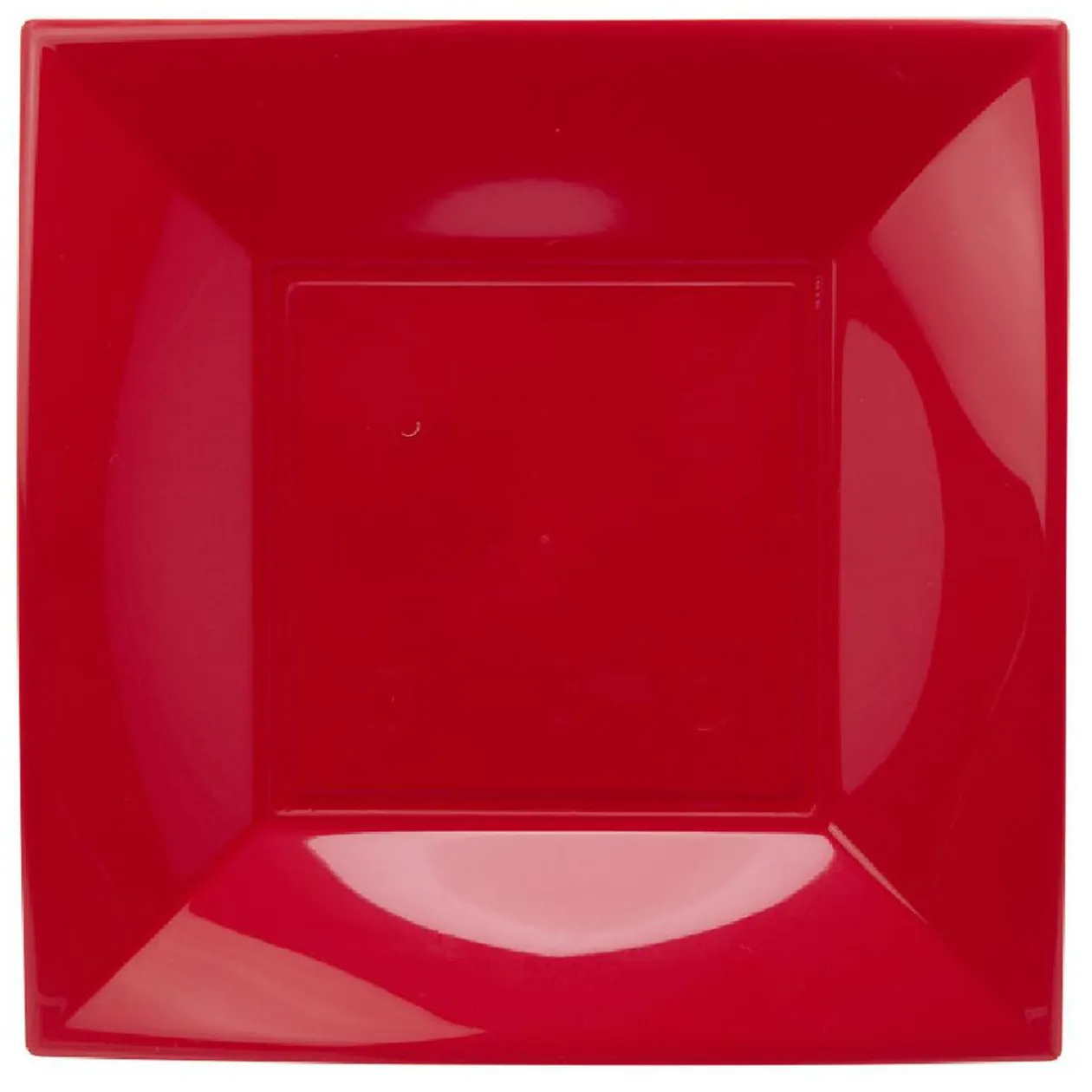 Lot de 6 assiettes carrées en plastique uni rouge pour déguster vos desserts dans un esprit de fête !
