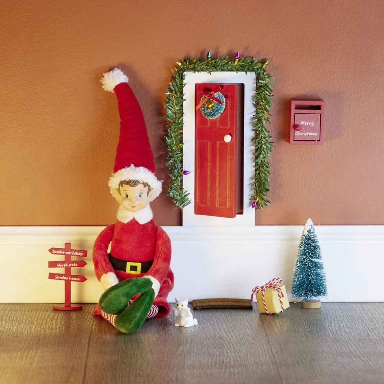 Lot de 8 accessoires « entrée » en bois pour lutin farceur L20x14x4cm